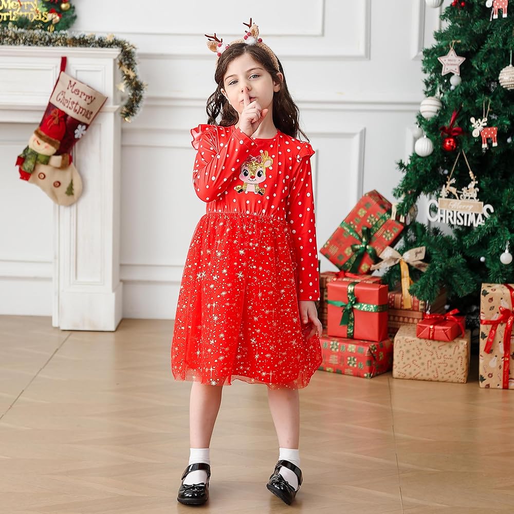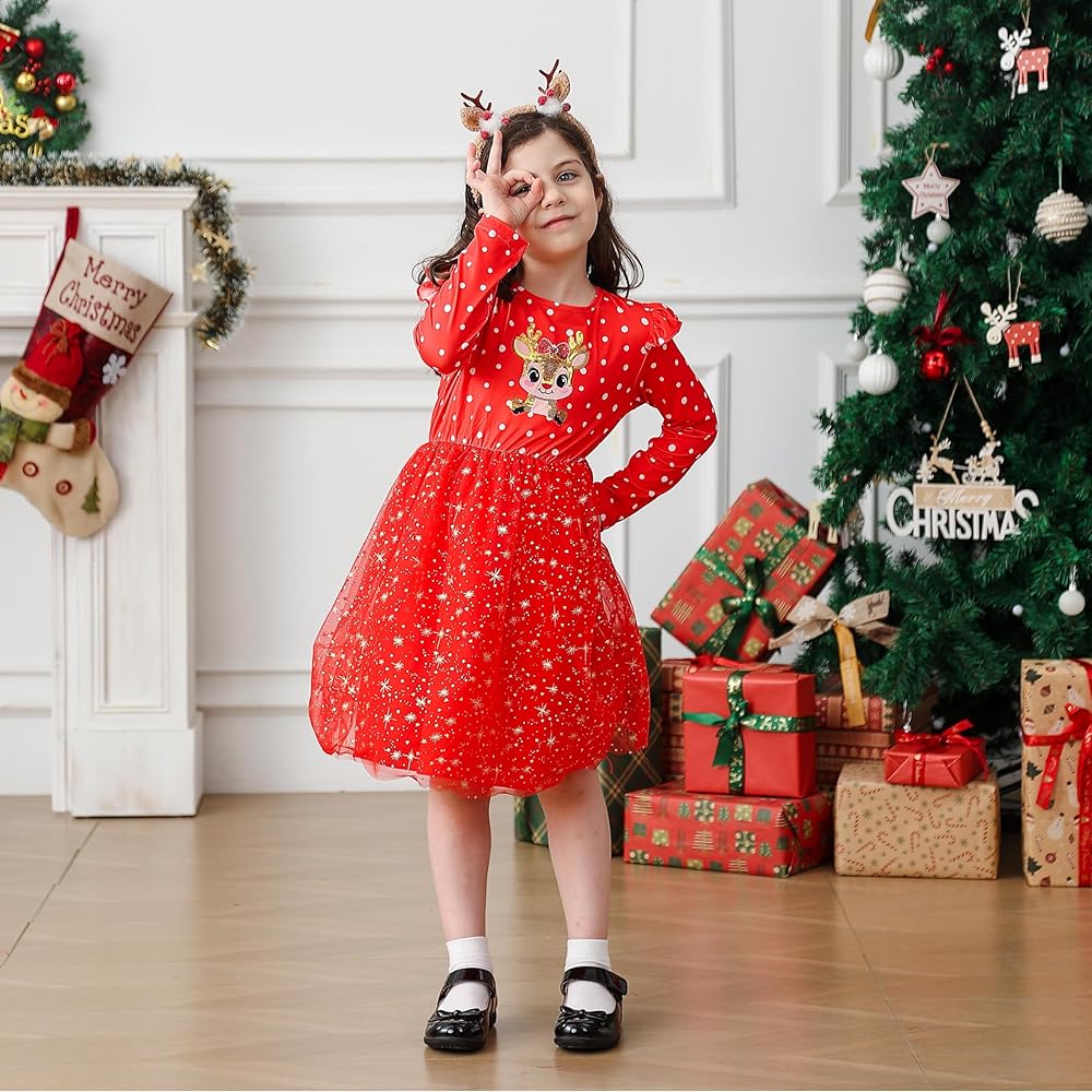 المناسبة: هذا الفستان للفتيات من عمر 2 إلى 6 سنوات هو أفضل هدية لعيد الميلاد لأميرتك الصغيرة. يرجى الرجوع إلى جدول المقاسات لاختيار المقاس المناسب وفقًا لطول طفلك