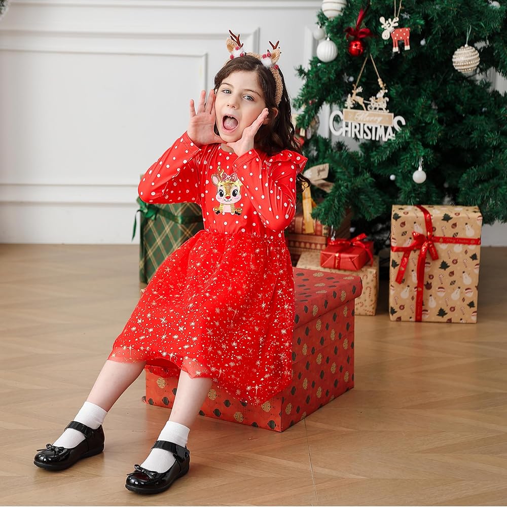 المواد: فستان عيد الميلاد للفتيات اللطيفات مصنوع من نسيج مريح ناعم وصديق للبشرة ومتين وجيد التهوية. الفستان المكشكش ذو البطانات الناعمة مريح على الجلد