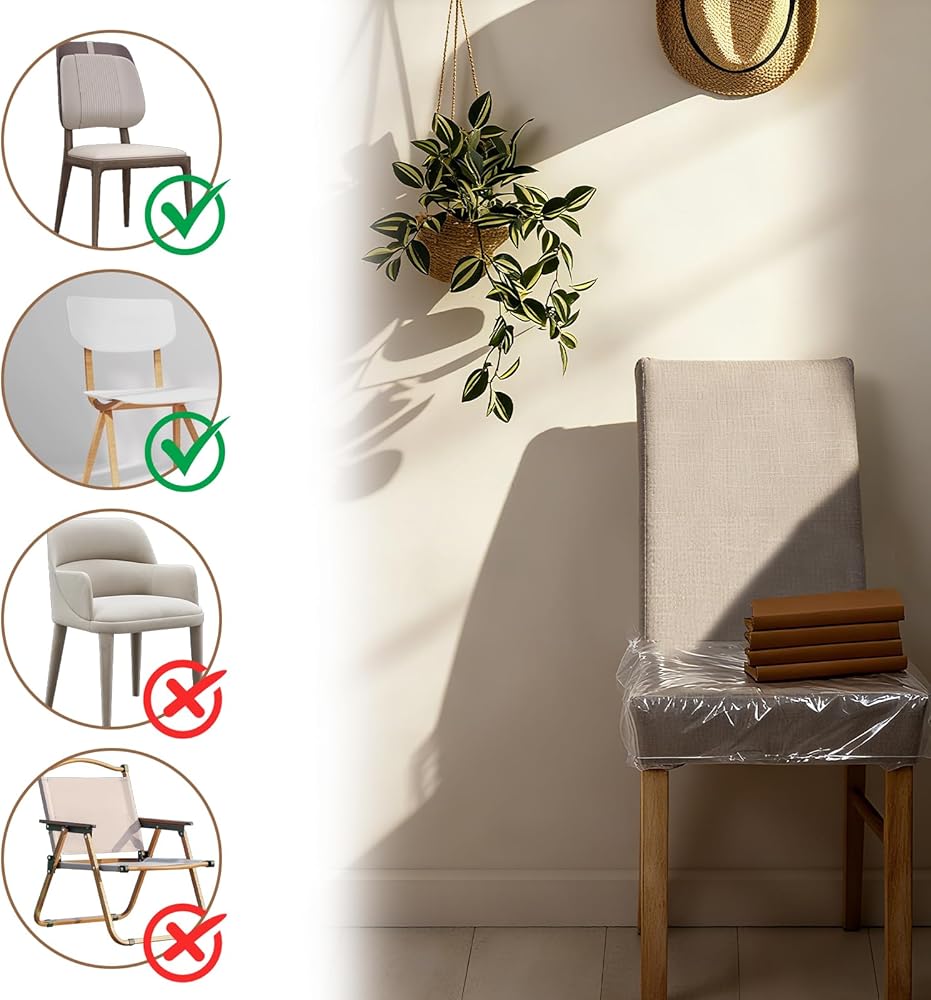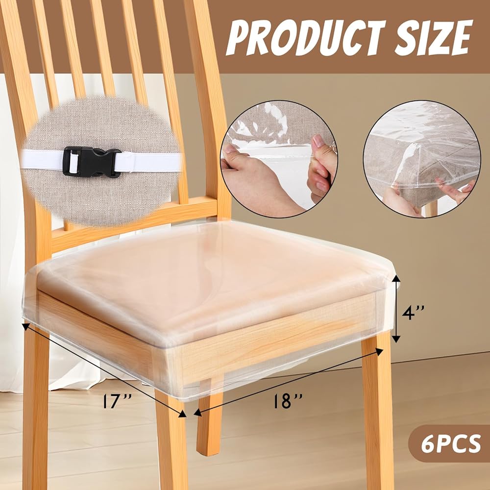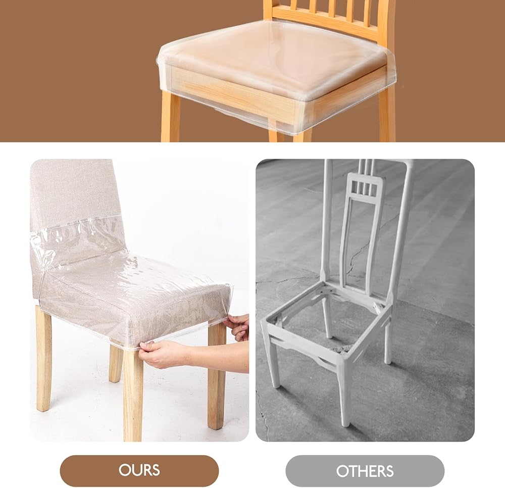 Clear Design & Decor Harmony: The transparent PVC material preserves your chair's original color, pattern, and texture—you won't have to hide your favorite dining chairs behind opaque covers. It blends seamlessly with any home decor (modern, rustic, classic), adding practical protection without disrupting your space's aesthetic. The PVC is also thick enough to resist tearing, ensuring durability while staying flexible
