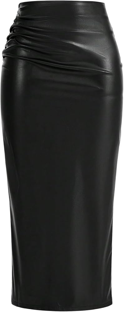 • Bodycon pu skirt for women features a high-rise waist, a midi length, and a subtle ruched design that adds movement and elegance