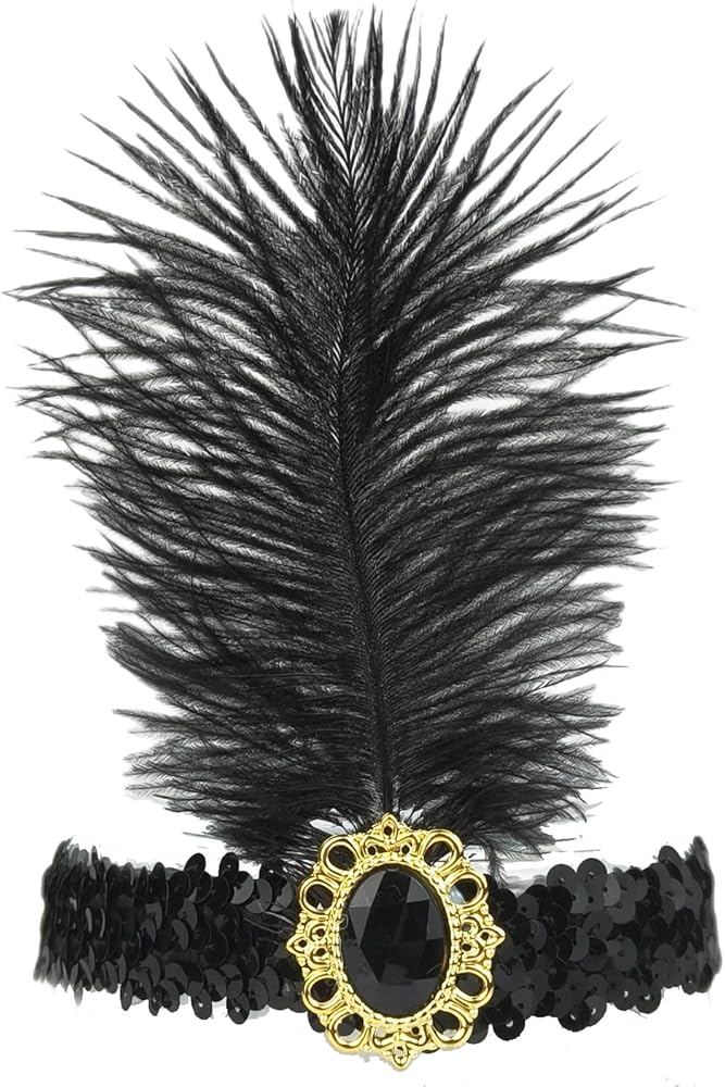 【 تصميم فلابر عتيق من عشرينيات القرن العشرين】تجتمع قطعة الرأس ذات الطراز الكلاسيكي من عشرينيات القرن العشرين مع تفاصيل براقة: مركز حجر الراين المتلألئ، والترتر اللامع، وريش النعام المنفوش يضفي سحرًا فوريًا. كن مميزًا بين الجميع في أي مناسبة مع هذه القطعة المميزة من عصر غاتسبي!