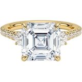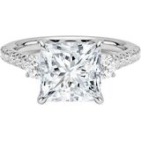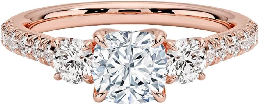 تفاصيل الحجر: الحجر الرئيسي: مويسانيتي، شكل الحجر الرئيسي: قطع وسادة رائعة، وزن الحجر الرئيسي: 3 قيراط (9 مم) تقريبًا. لون الحجر الرئيسي: عديم اللون، وضوح الحجر الرئيسي: VVS، بريق الحجر الرئيسي: ممتاز، الحجر الجانبي: قطع دائري، لون الحجر/الوضوح: أبيض/VVS1، وزن الحجر الجانبي: 0.40 قيراط تقريبًا.