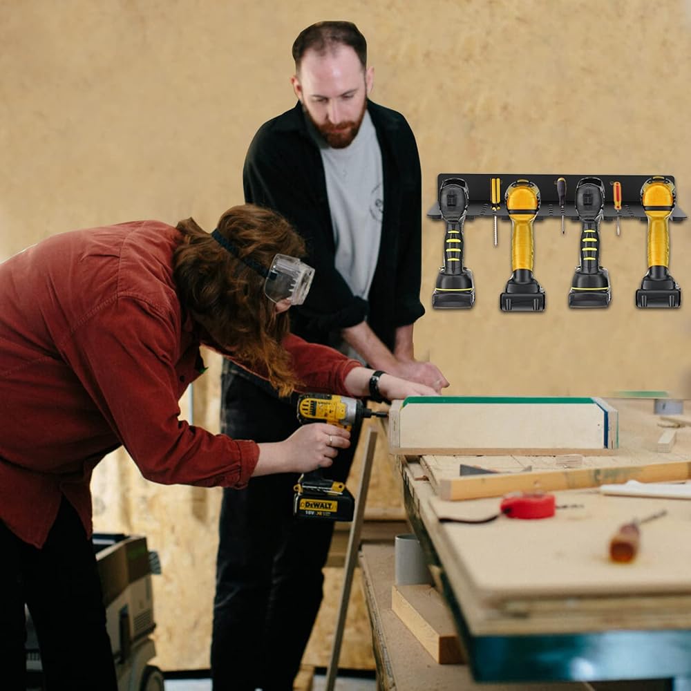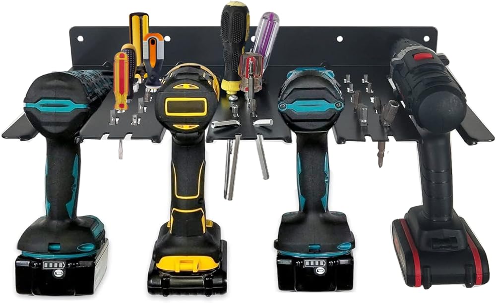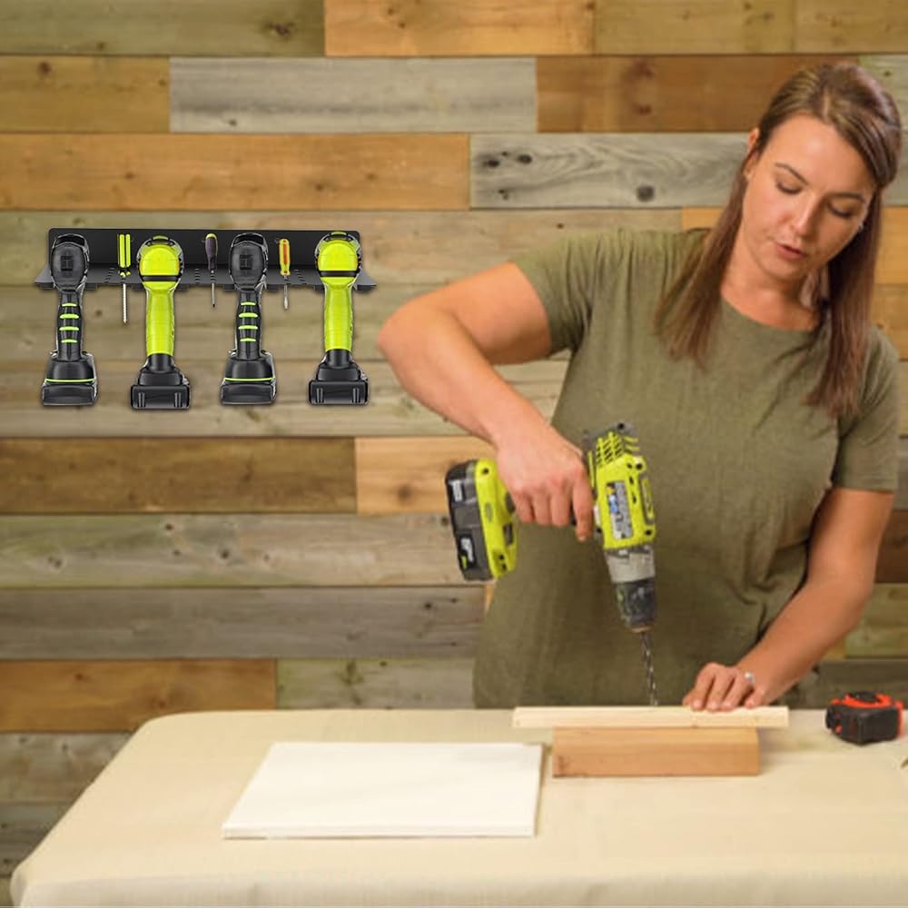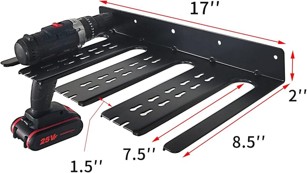 • 【رف تخزين المثقاب الكهربائي مع رف الأدوات】قم بتنظيم جميع المثاقب الكهربائية على رف التخزين المثبت على الحائط! يمكن لمنظم الأدوات الكهربائية تخزين 4 مثقاب كهربائي، ومفكات براغي، وصناديق أدوات، ومطاحن زاوية لآلة القطع وأدوات أخرى، وهي مناسبة جدًا لتخزين الأدوات وتخزين المرآب.