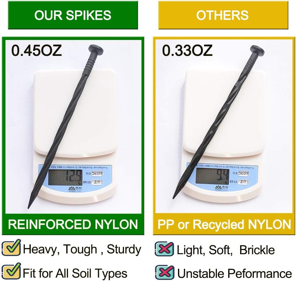 ★مادة شديدة التحمل: المسامير ذات الحواف الطبيعية مقاس 8 بوصة مصنوعة من النايلون المقوى، مع كل من الصلابة والمتانة، أقوى من مسامير النايلون العادية، ومناسبة لجميع أنواع التربة، وقوية بما يكفي للاستخدام التجاري، ولكنها سهلة بما فيه الكفاية للمشروعات المنزلية.