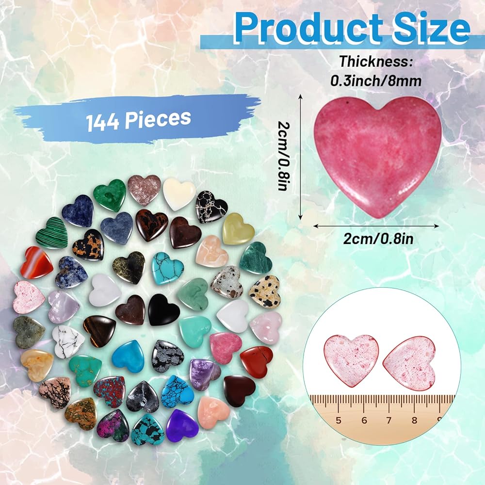 Packaging Contents: 144 pieces of natural stone heart stones (at least 40 stone styles)