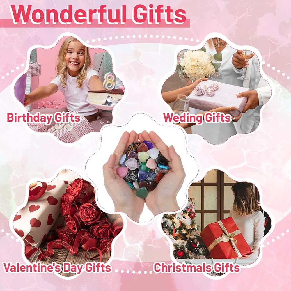 • 【Thoughtful Gifts】This worry stones bulk set of heart-shaped crystals makes a meaningful gift for loved ones on occasions like Valentine's Day, Mother's Day, or birthdays. The assorted colors and healing qualities convey care and positivity, making worry stones heart shaped a unique and heartfelt present for friends, family, or colleagues.