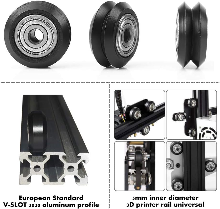 بكرات Vslot للطابعة ثلاثية الأبعاد: محمل عجلة بوم قياسي عالمي بقطر داخلي 5 مم، عجلة قيادة بوم توجيه خطية، عجلة بيرلين، تستخدم للوحة جسرية الطابعة ثلاثية الأبعاد، منزلق التحكم الخطي باستخدام الحاسب الآلي ومكونات أخرى. تحقيق الحركة الخطية في الأخدود.