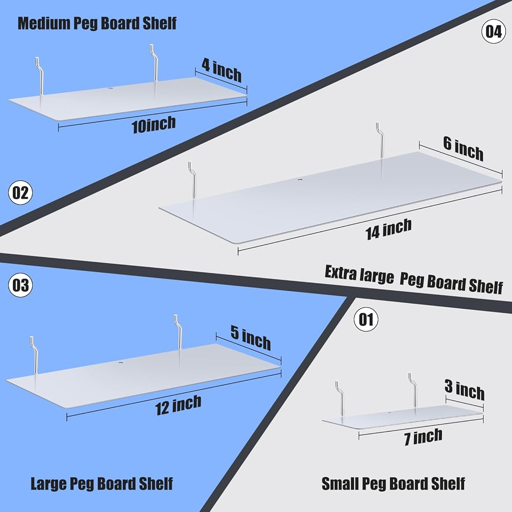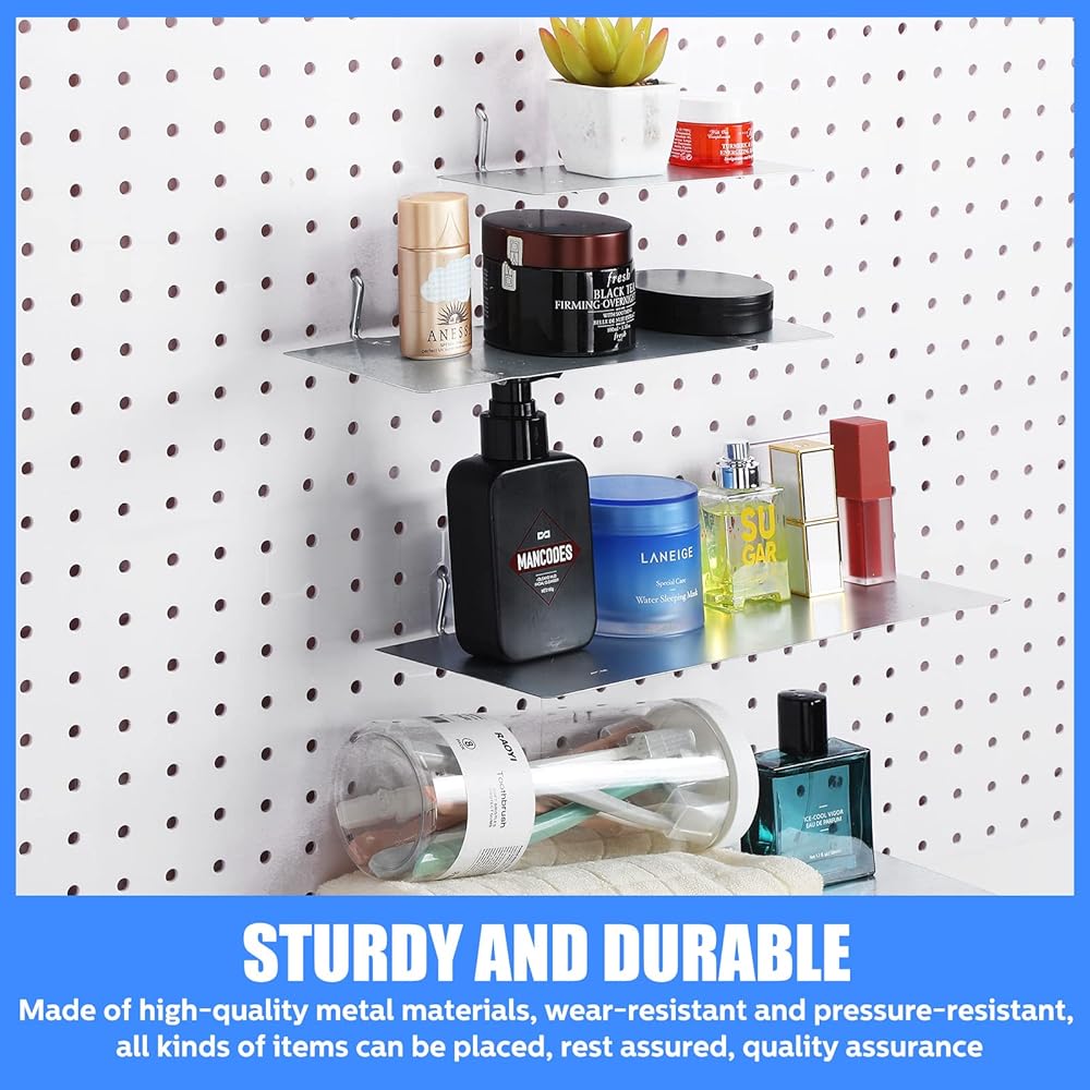 ما تحصل عليه: تتضمن العبوة 4 قطع من أرفف لوح الأوتاد مقاس 10 × 4 بوصة، وهي كبيرة بما يكفي لحمل الزجاجات والأشرطة والأكواب والقفازات وأواني الزهور وأكثر من ذلك، مما يسمح بالاستخدام اليومي والاستبدال.