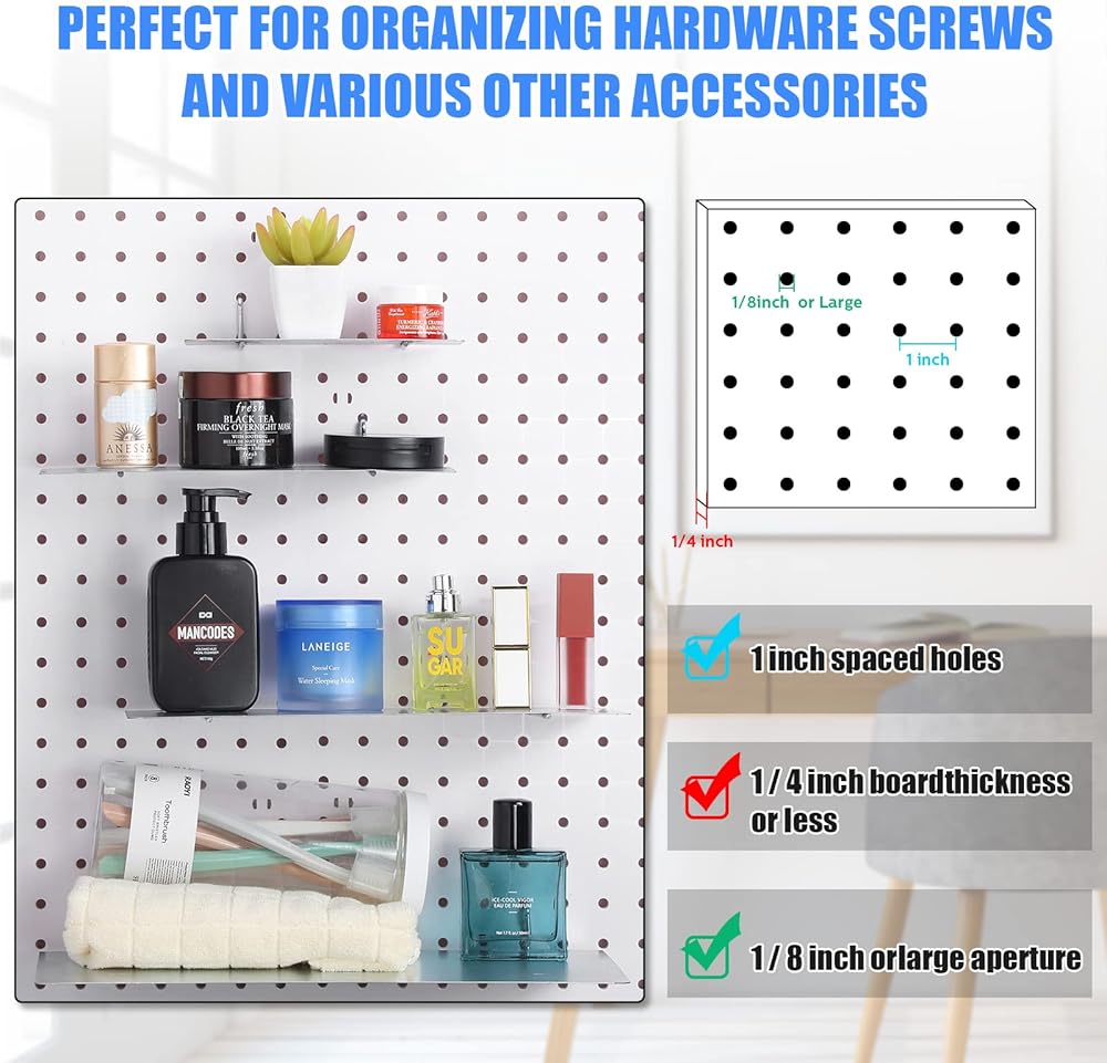سهلة التجميع: ملحقات بيجبورد هذه لغرفة الحرف اليدوية مناسبة لمعظم ألواح البيجبورد مقاس 1/8 و1/4 بوصة مع مسافة 1 بوصة، وهي سهلة ومريحة لتجميعها
