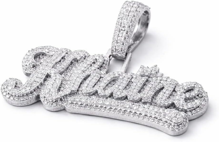 Make a bold statement with this luxurious custom name pendant necklace. Crafted from premium Sterling Silver with 14K gold plating, this eye-catching piece features an impressive 2.14-inch width that commands attention. The pendant showcases meticulous craftsmanship with its fully iced-out design, where precisely set moissanite stones (2 CT total) create a dazzling effect that catches light from every angle. The personalized name charm is styled in elegant script lettering, perfect for showcasing your identity or creating a meaningful gift. Available in both gold-plated and silver finishes, this versatile piece pairs beautifully with both casual and formal attire. The high-quality sterling silver base ensures durability while maintaining its luxurious appearance. The pendant features a sophisticated pave setting that maximizes brilliance and sparkle, with VVS1 clarity stones throughout. Whether for birthdays, anniversaries, or special celebrations, this customizable pendant necklace combines personal meaning with contemporary urban style, making it an ideal choice for both men and women who appreciate fine jewelry with a modern edge.