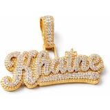 CUSTOMIZATION: Personalized script-style name pendant measuring 2.14 inches in width, creating a bold statement piece