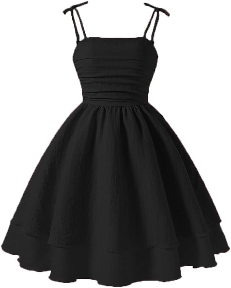 Unique Design: Girls flowy dress crafted with double layer ruffle hem and ruched bodice design, offering both a sophisticated and playful look, adjustable spaghetti strap and smocked back ensures a snug yet comfortable fit.