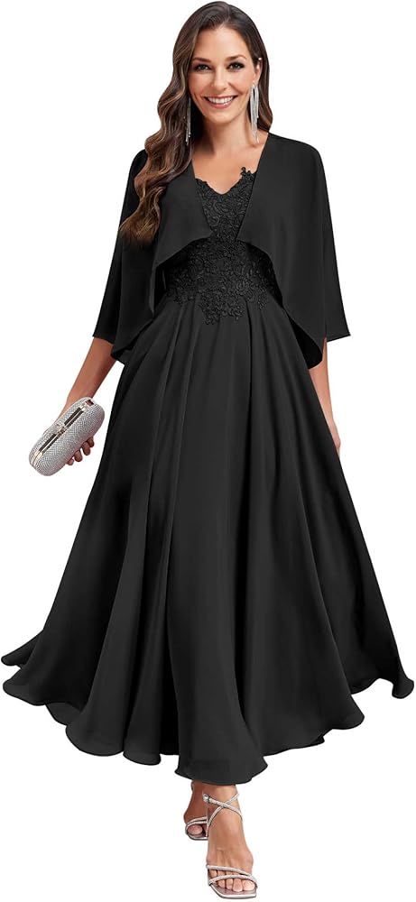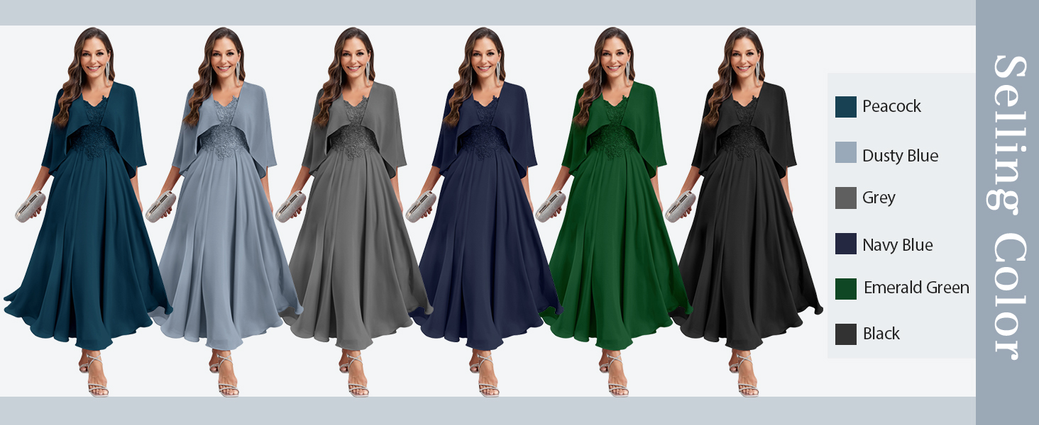 فساتين أم العروس الأنيقة للنساء: فستان أم العروس الشيفون ذو الرقبة على شكل حرف V مع السترات مزين بالشيفون الناعم. تخلق الحاشية المتدفقة مظهرًا أنيقًا ونبيلًا. سوف تتلقى العديد من الثناء على فساتين أم العروس المصنوعة من الشيفون بطول الشاي