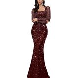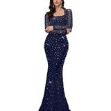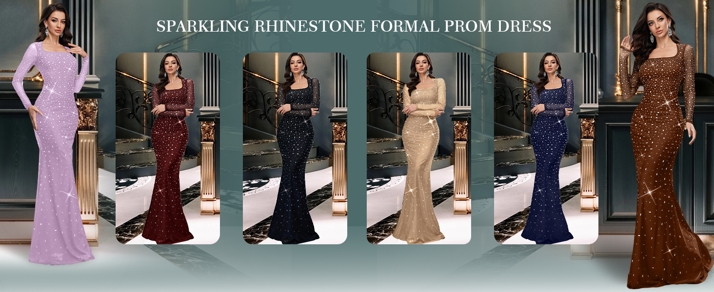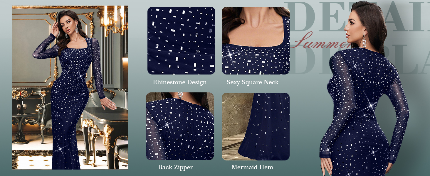 تصميم فريد: هذا الفستان الطويل ذو الرقبة المربعة والأكمام الطويلة من حجر الراين، أحجار الراين لملمس فاخر وداعم لضمان مظهر مريح وجذاب أثناء ارتداء هذا الفستان الطويل الأنيق. قم بتحسين العمل اليدوي المخصص فقط للفتيات والنساء الفاتنات لإبراز المظهر الأنثوي الساحر، مما يجعلك مميزًا في ليلتك الخاصة