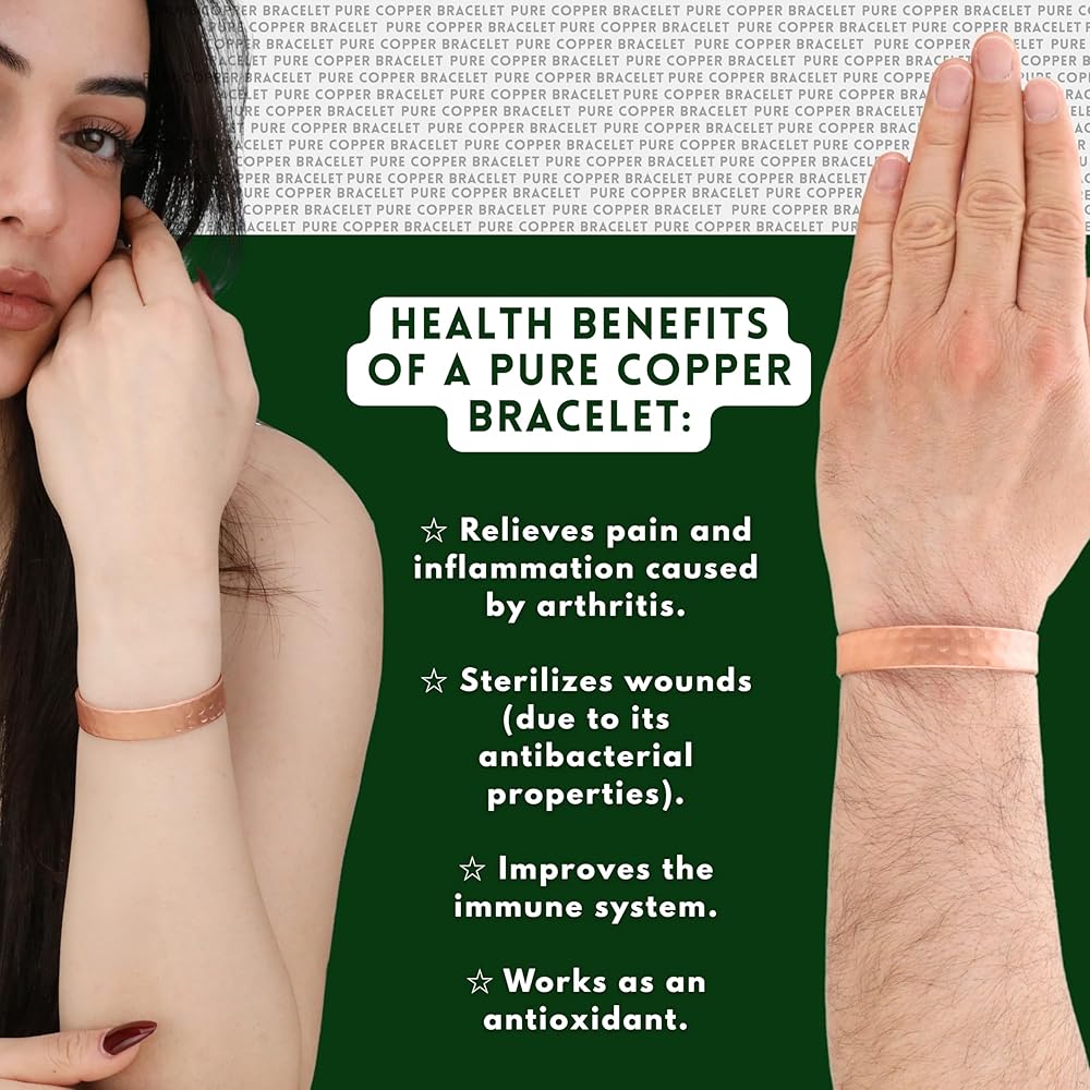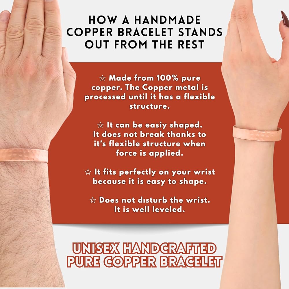 HANDMADE ELEGANT COPPER BRACELET: Handmade stylish bracelet made of 100% pure copper for women and men by the best artisans in Anatolia. The copper bracelet has the most ideal thickness among its competitors, with a thickness of 2 mm. It is both easy to shape and durable.