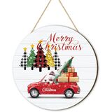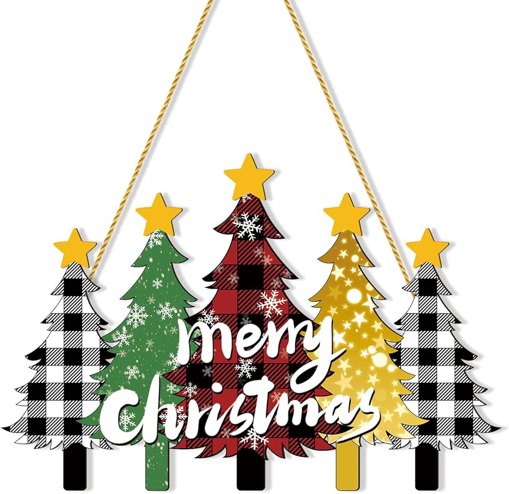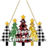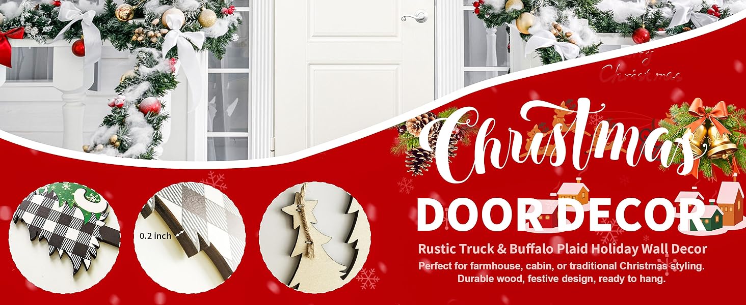 لافتة باب خشبية لعيد الميلاد المجيد مع منقوشة وشجرة الجاموس - علامة ترحيب إكليل باب شجرة عيد الميلاد للباب الأمامي والجدار والشرفة - ديكور عطلة المزرعة