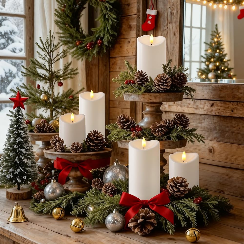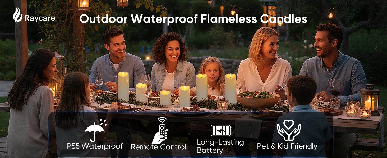 شموع Raycare عديمة اللهب مقاومة للماء للاستخدام الخارجي مع جهاز تحكم عن بعد ومؤقت، شمعة عمود كهربائية وهمية تعمل بالبطارية لديكور عيد الميلاد وحفلات الزفاف، أبيض عاجي، مجموعة من 3