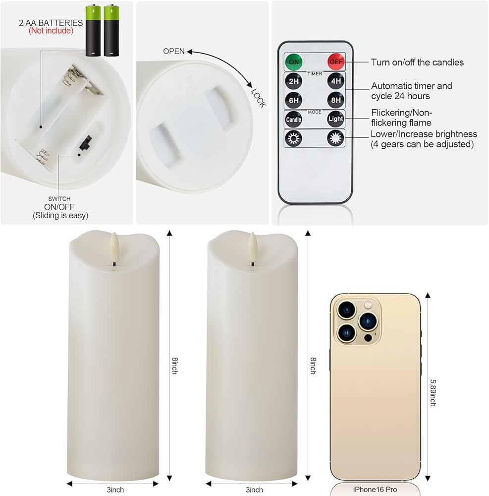 【العبوة والخدمة】: تحتوي كل مجموعة على قطعتين من الشموع عديمة اللهب الخارجية مقاس 3 × 8 بوصة وجهاز التحكم عن بعد ودليل المستخدم. أيضًا، يرجى الاتصال بنا إذا كانت لديك أي أسئلة حول المنتج، وسوف نقوم بحل مشكلتك في غضون 24 ساعة.