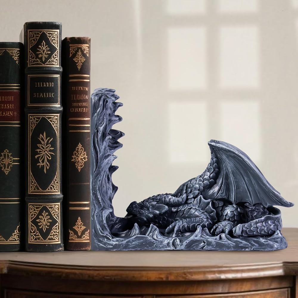 【HIGH QUALITY MATERIAL】: The dragon book-ends is made of high-quality resin material through 3D printing, no deformation or fading, and excellent aesthetics and practicality.