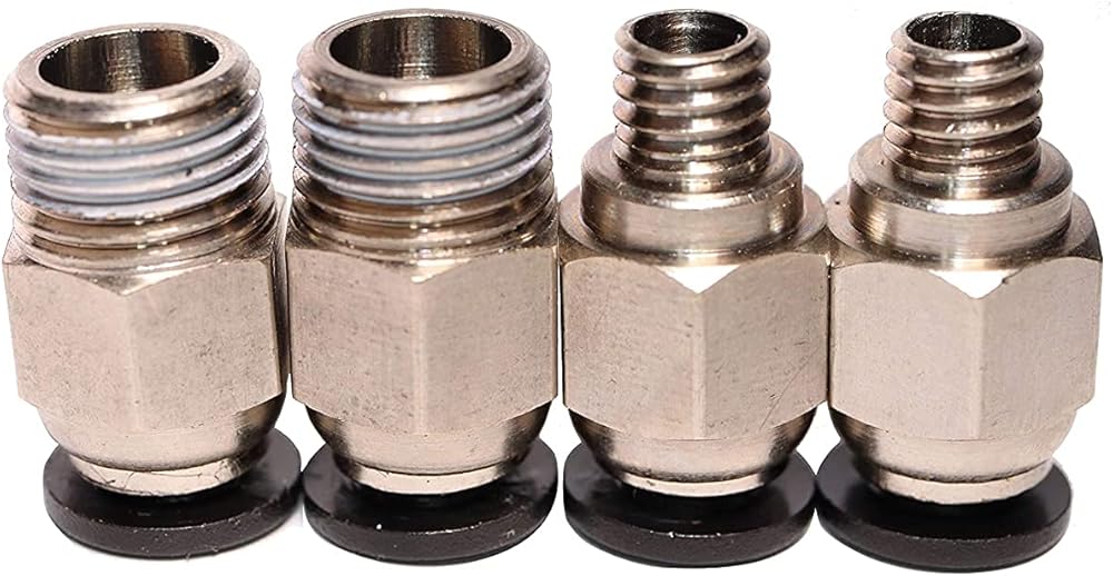 تعمل التركيبات الهوائية المحسنة ذات الأسنان المعدنية المتوفرة في هذه الحزمة بشكل أفضل بكثير من خيارات المخزون التي توفرها العديد من الشركات المصنعة للطابعات ثلاثية الأبعاد الرخيصة ذات الأسنان البلاستيكية أو آليات القفل الرخيصة. تركيب الطارد هو PC4-M6 والتركيب الساخن هو PC4-M10. هذه هي الأحجام القياسية لمعظم الطابعات ثلاثية الأبعاد مفتوحة المصدر ونفس الأحجام التي تستخدمها معظم الشركات المصنعة الصينية.