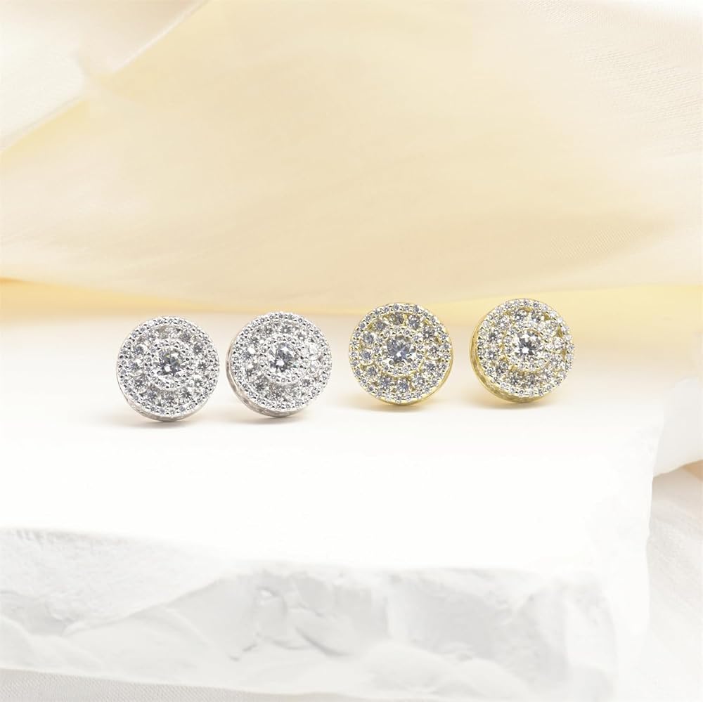 Elevate your style with these stunning Delzzad circular stud earrings, masterfully crafted with S925 sterling silver and premium VVS synthetic moissanite stones. Available in both silver and gold tones, these luxurious earrings come in three impressive sizes: 0.8ct (8.3mm), 1.2ct (9.7mm), and 3ct (12.2mm). Each piece features an intricate multi-stone arrangement with a prominent center stone surrounded by smaller brilliant-cut moissanites, creating a dazzling cluster effect. The secure screw-back design ensures comfortable, all-day wear. Perfect for both men and women, these versatile earrings add a touch of sophistication to any occasion - from weddings and anniversaries to daily wear and special celebrations. The D-color moissanites deliver exceptional brilliance and fire, making these earrings a true statement piece. Each pair comes beautifully presented in a jewelry box with certification, making them an ideal gift choice for birthdays, Mother's Day, or any special occasion.