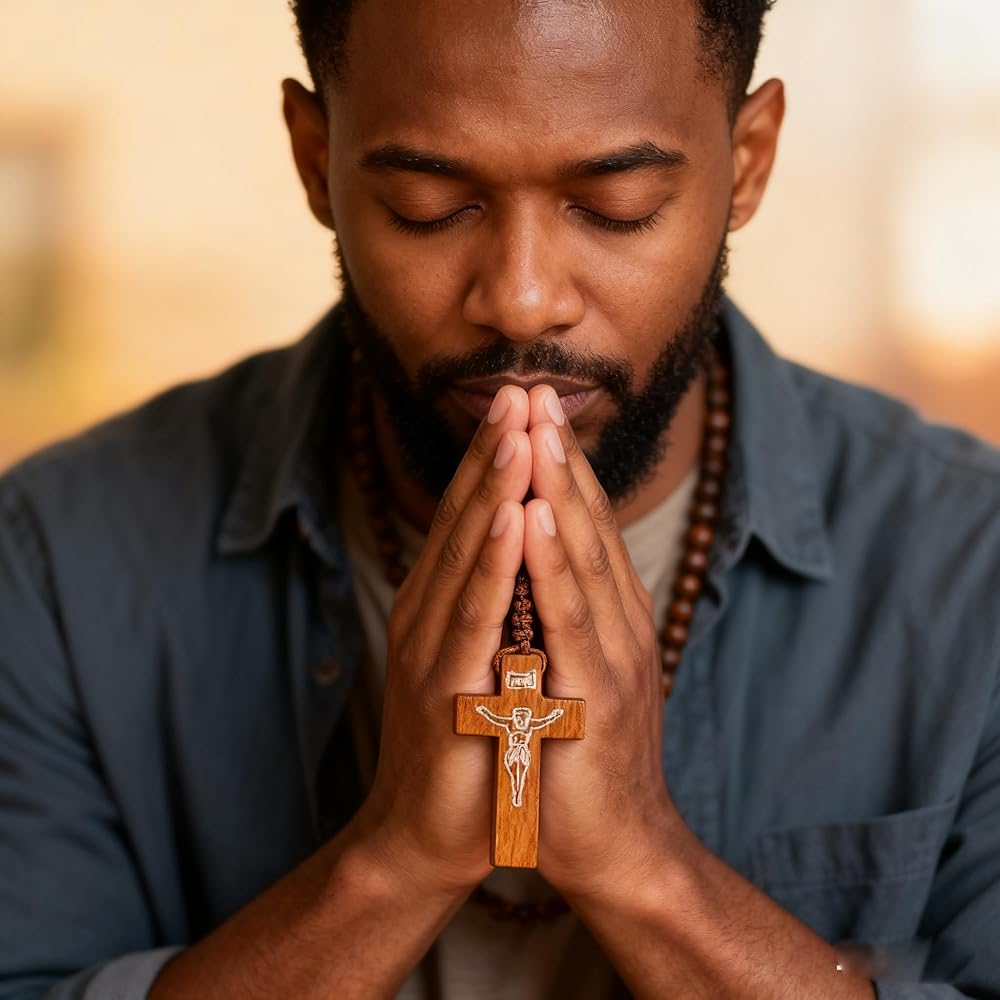 • [Handcrafted and Durable] Each rosary is hand-threaded from polished wood beads, offering a smooth, natural texture. The sturdy string construction ensures durability and long-term use without breaking easily