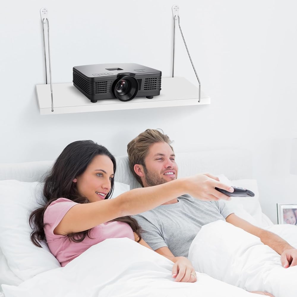 This projector shelf for wall crafted from genuine wood, this shelf combines functionality with timeless style, it seamlessly integrates into your room, serving as a discreet media hub under TV or an attractive display ledge for small decor items in your living space.