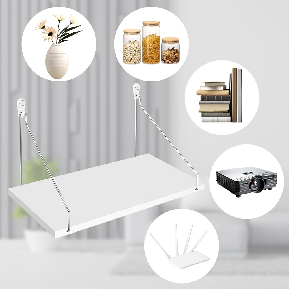 The floating wall shelf beyond a media shelf, its utility shines throughout your home, use it in the kitchen for spices, the bathroom for toiletries, the office for supplies, or the bedroom as a minimalist nightstand, it's the perfect organizer for any area where efficient storage is desired.
