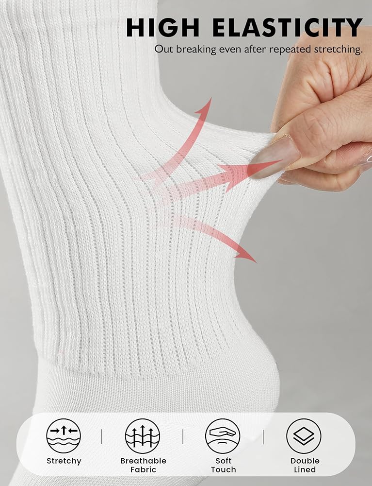 راحة طوال اليوم: تمتع بنعومة تشبه السحابة تحتضن قدميك من الصباح إلى الليل. مصنوعة للحياة الحقيقية، توفر هذه الجوارب الأنبوبية شعورًا مريحًا بالكاد يبقيك مرتاحًا سواء كنت بالخارج أو في المنزل