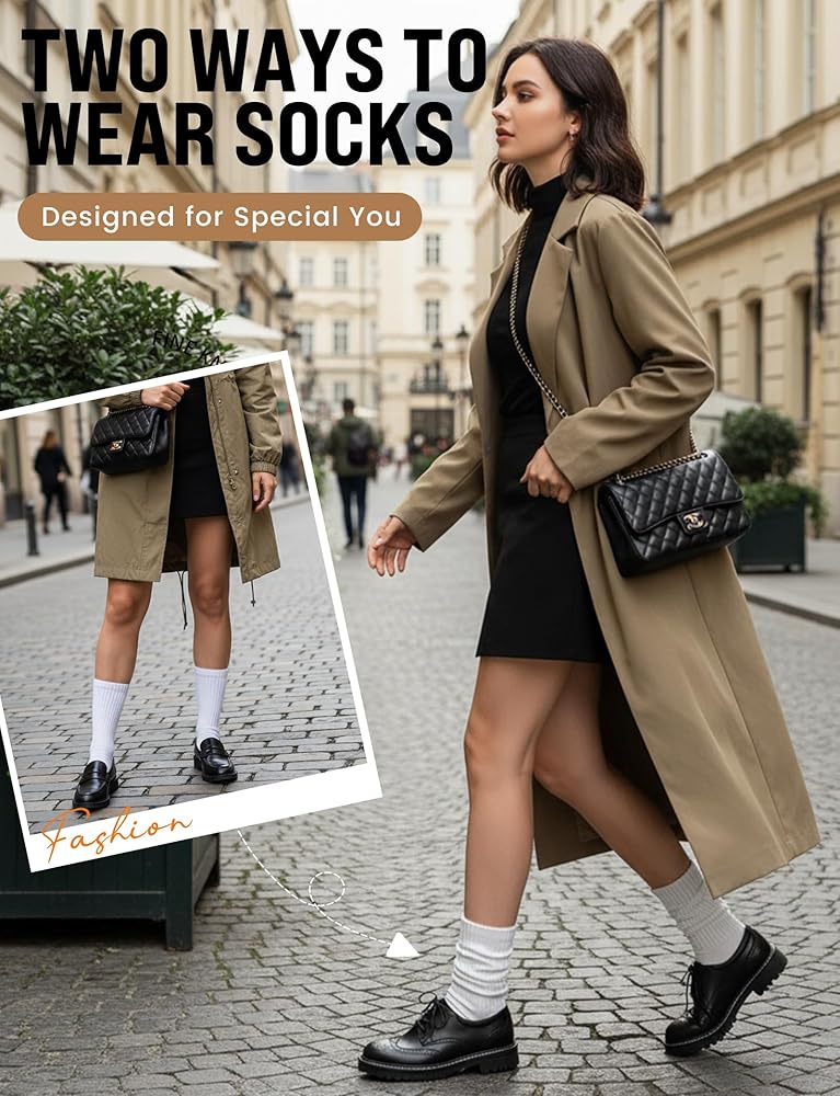 طراز قديم ومتعدد الاستخدامات: مستوحاة من أزياء الثمانينيات الكلاسيكية، تضيف هذه الجوارب الرياضية لمسة من السحر العتيق إلى أي مظهر. ألوانها البسيطة تجعلها مثالية للارتداء مع الأحذية الرياضية لذوق الشارع أو مع الأحذية الطويلة للحصول على مظهر جمالي مريح في المقهى