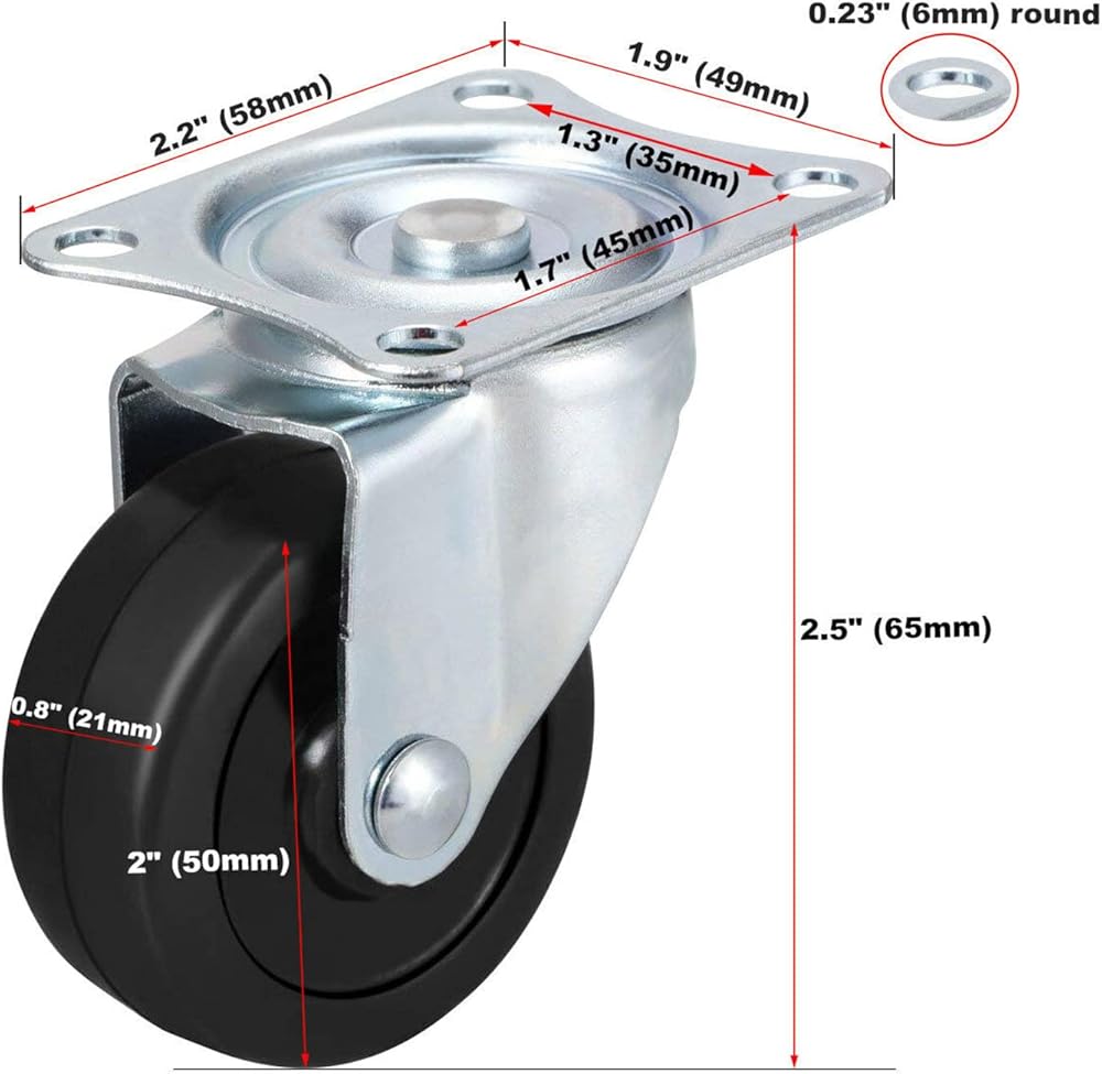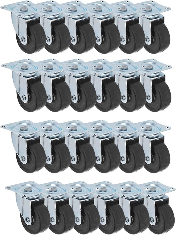 عجلة دوارة شديدة التحمل مقاس 2 بوصة بدون فرامل مع لوحة علوية ومحمل، عبوة سوداء مكونة من 24 قطعة