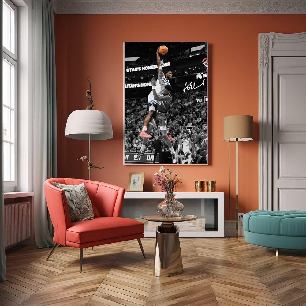 Applicable People Basketball Enthusiasts And Fans Fans Who Are Keen On Nba, Cba And Other Leagues, Especially Loyal Fans Of Specific Stars (Such As Kobe, James, Curry). Teens And Young People Like To Express Their Support For Idols Through Decoration. Sports Culture Enthusiasts People Who Resonate With Sportsmanship, Teamwork Or Competitive Aesthetics May Be Attracted By The Design Even If They Are Not Basketball Fans. Bedroom/Children'S Room: Inspire Children To Pursue Their Sports Dreams And Create A Vibrant Atmosphere. Living Room/Study Room: As A Visual Focus, Show The Owner'S Interests And Personality. Basement/Game Room: Match Basketball Hoops, Jerseys And Other Elements To Create A "Fan-Exclusive Space". Business And Public Space Sports Venues: Wall Decoration Of Basketball Courts And Training Centers To Enhance The Sports Atmosphere. Retail Stores: Sporting Goods Stores And Trendy Brand Stores Are Used As Theme Displays To Attract Target Customers. Office Space: Offices Or Meeting Rooms Of Sports Companies And Sports Teams To Convey Brand Culture. Event And Festival Scenes Fans Gathering/Watching Party: As A Background Board Or Photo Area Decoration. Basketball Theme Wedding: Incorporate The Hobbies Of The Bride And Groom, And Creatively Decorate The Ceremony Area. School/Club Activities: Used For Basketball Game Awards, Club Recruitment And Other Scenes. Special Customized Uses Commemorative Prints: Limited Editions Such As Tributes To Retired Stars And Commemorations Of Team Championships, With Both Emotional And Collection Value. Star Co-Branded Items: Launched In Cooperation With Brands To Attract Cross-Border Fans Of Trendy Culture And Sports. Matching Suggestions Style Coordination: Match With Metal Frames, Neon Lights, Retro Jerseys And Other Elements To Enhance The Sports Industrial Style.