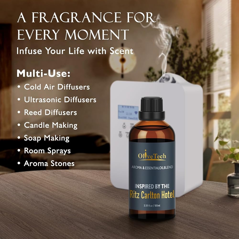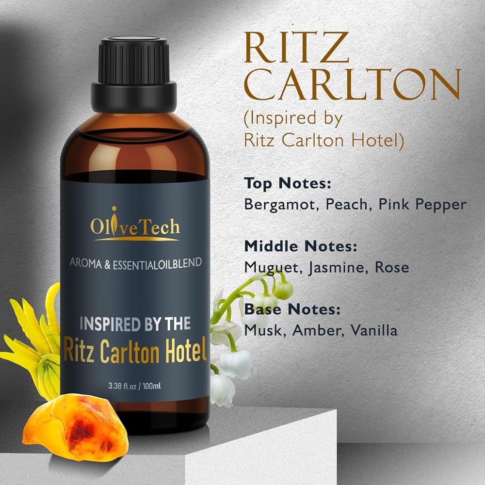 زيت موزع روائح الفنادق مستوحى من رائحة إصدار سويت إليجانس من ريتز كارلتون، زيت عطري للعلاج العطري من أوليف تيك للهواء البارد وموزعات الروائح بالموجات فوق الصوتية، زجاجة زجاجية سعة 100 مل / 3.38 قدم أونصة