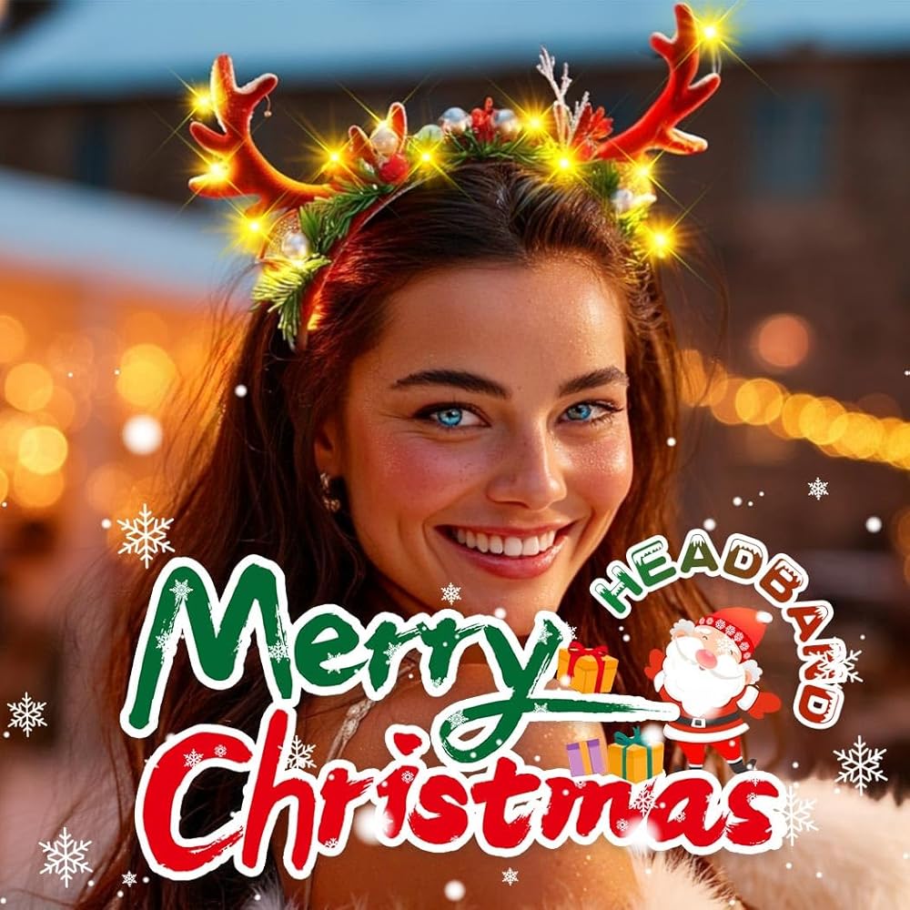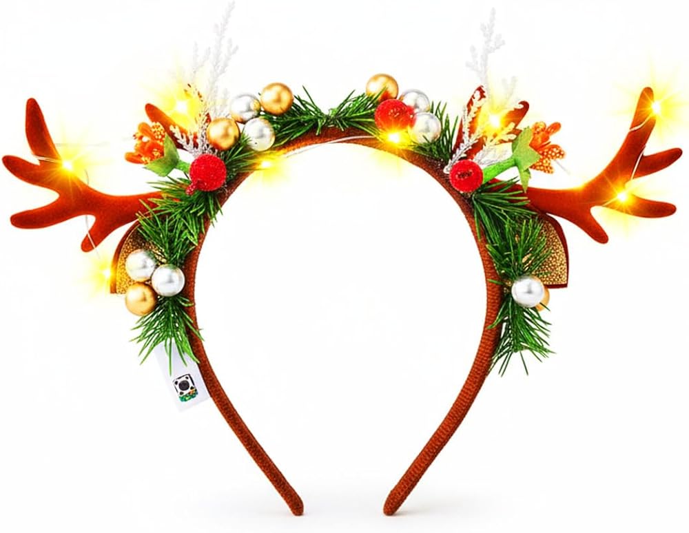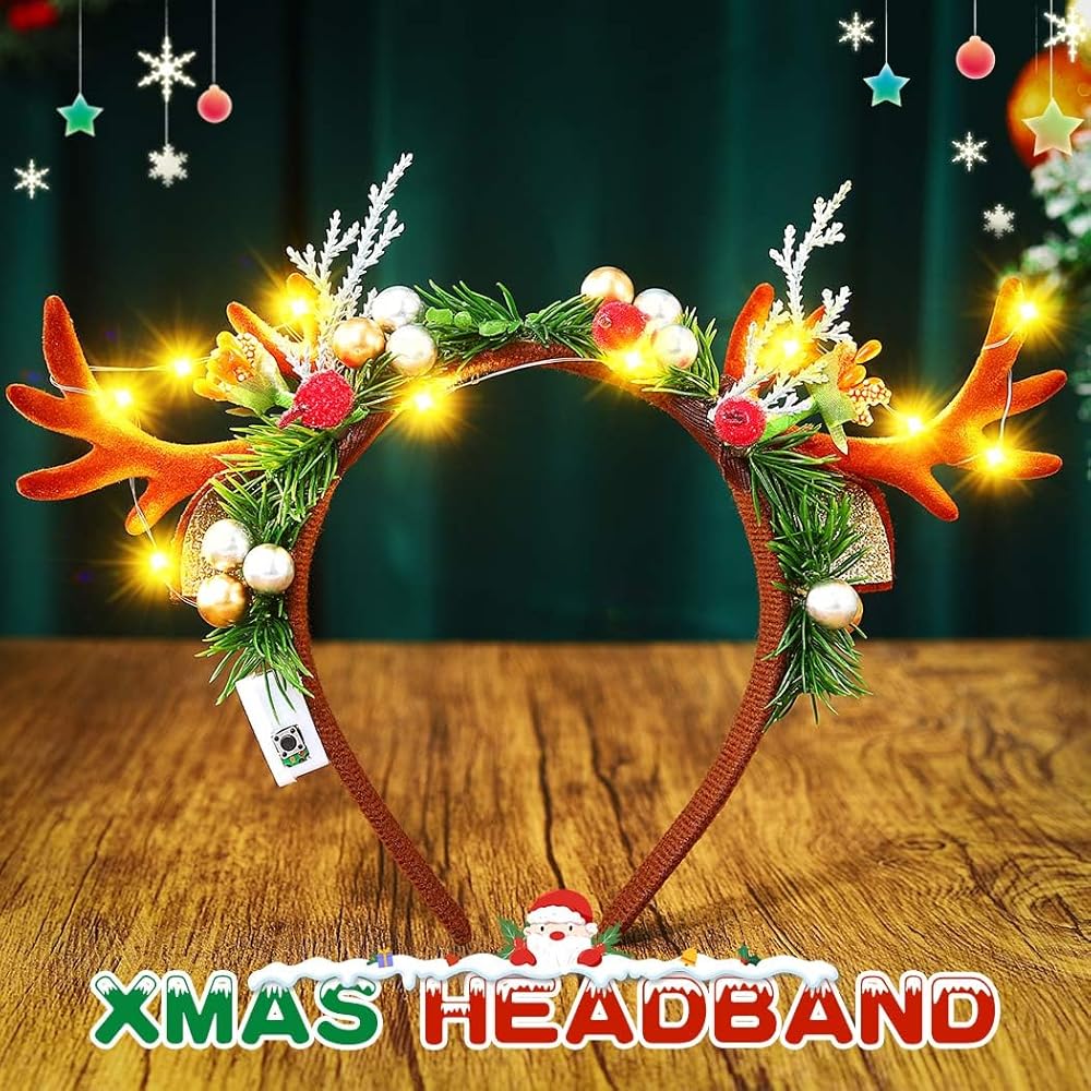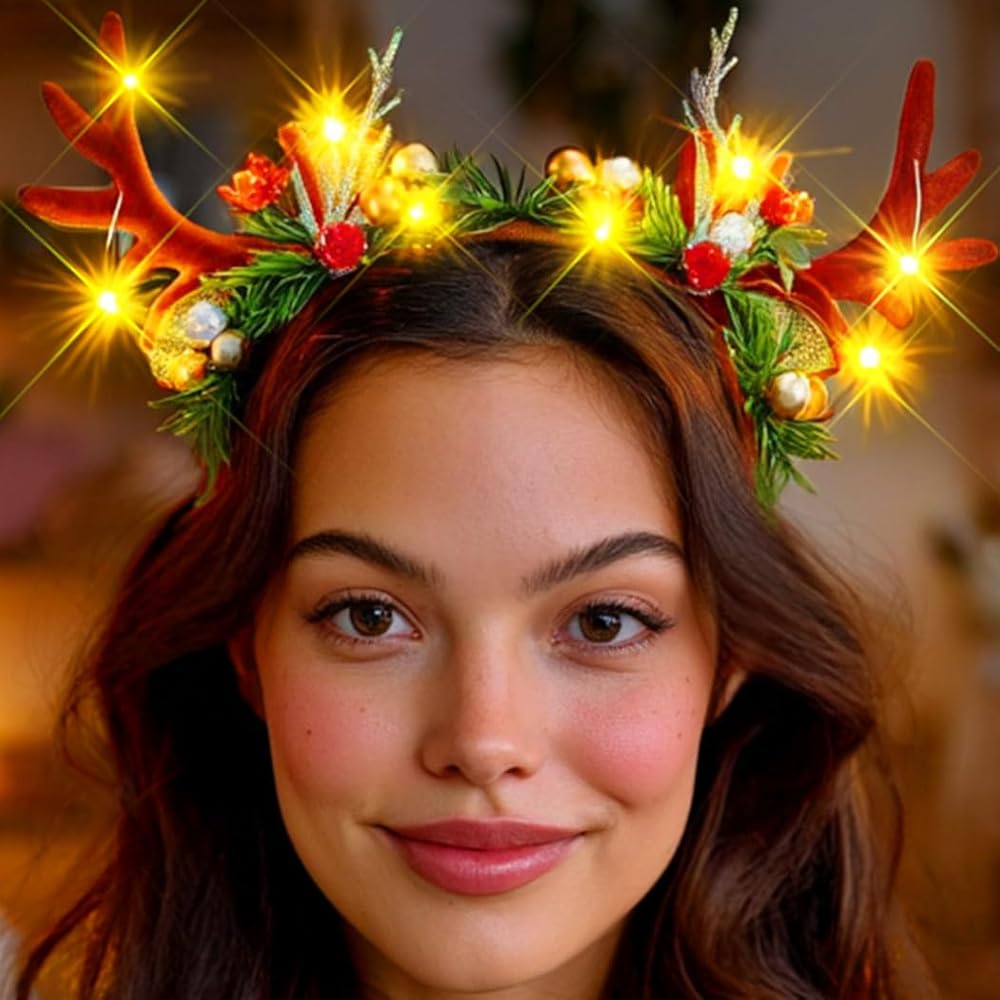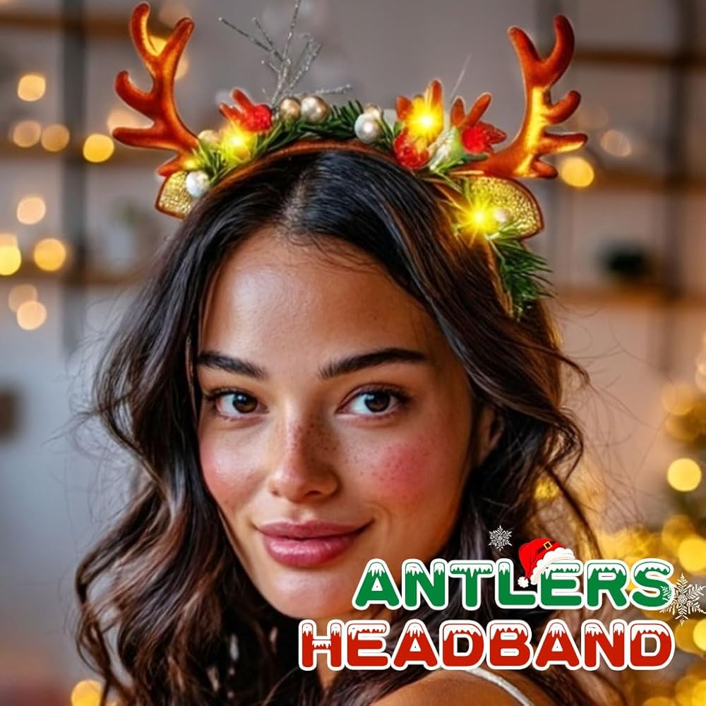 عقال ملون. تخلق عصابات الرأس المزودة بقرون الرنة المزودة بتقنية LED توهجًا ساحرًا وسحريًا يضبط مزاج العطلة على الفور.