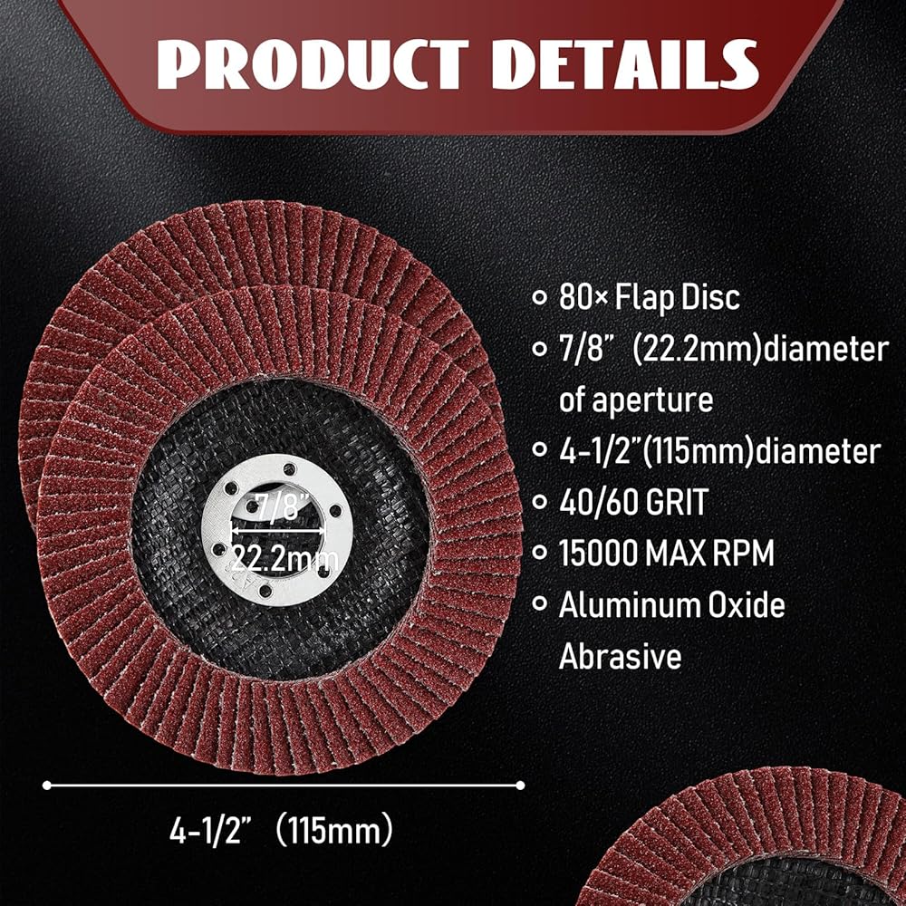 Ample Quantity: each package comes with a whopping 80 flap discs, ensuring that you always have an adequate supply on hand; This sufficient quantity is ideal for multiple projects, ideal for stock replenishment or even sharing with fellow DIYers or professionals