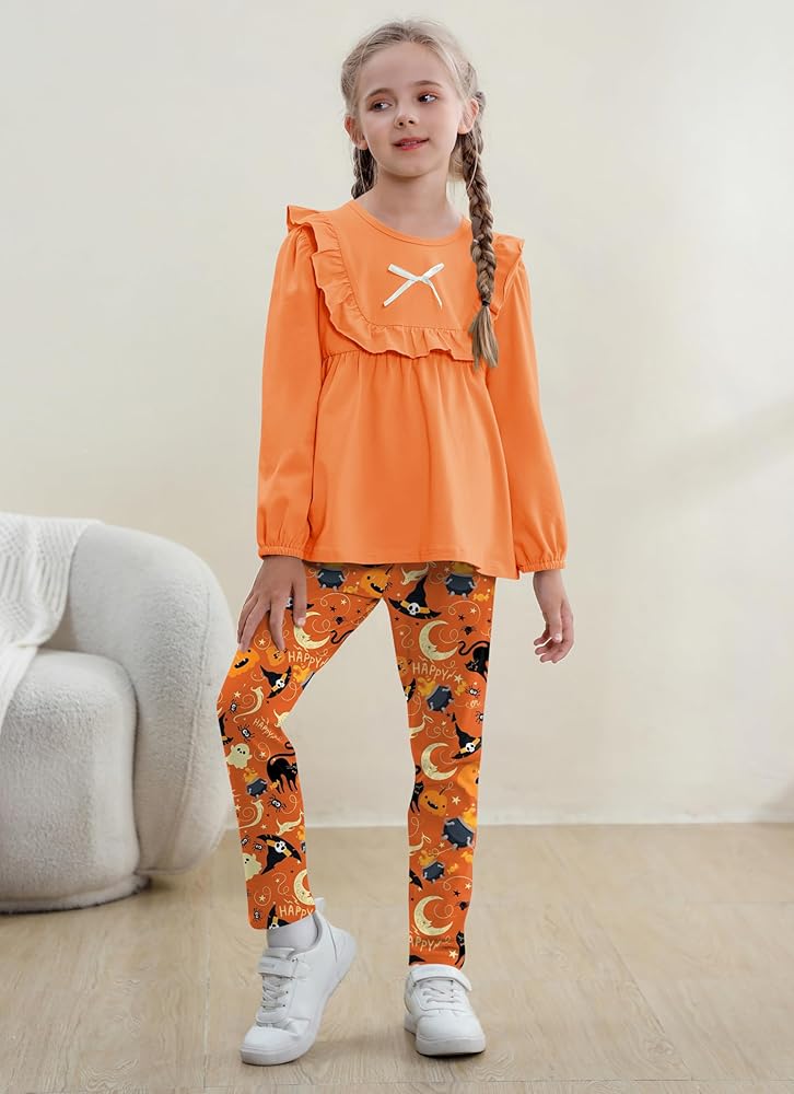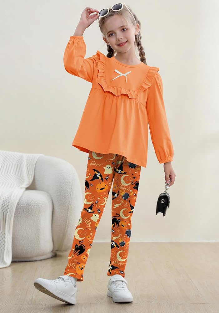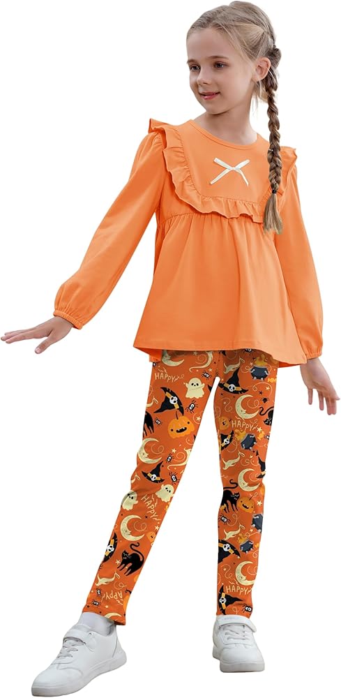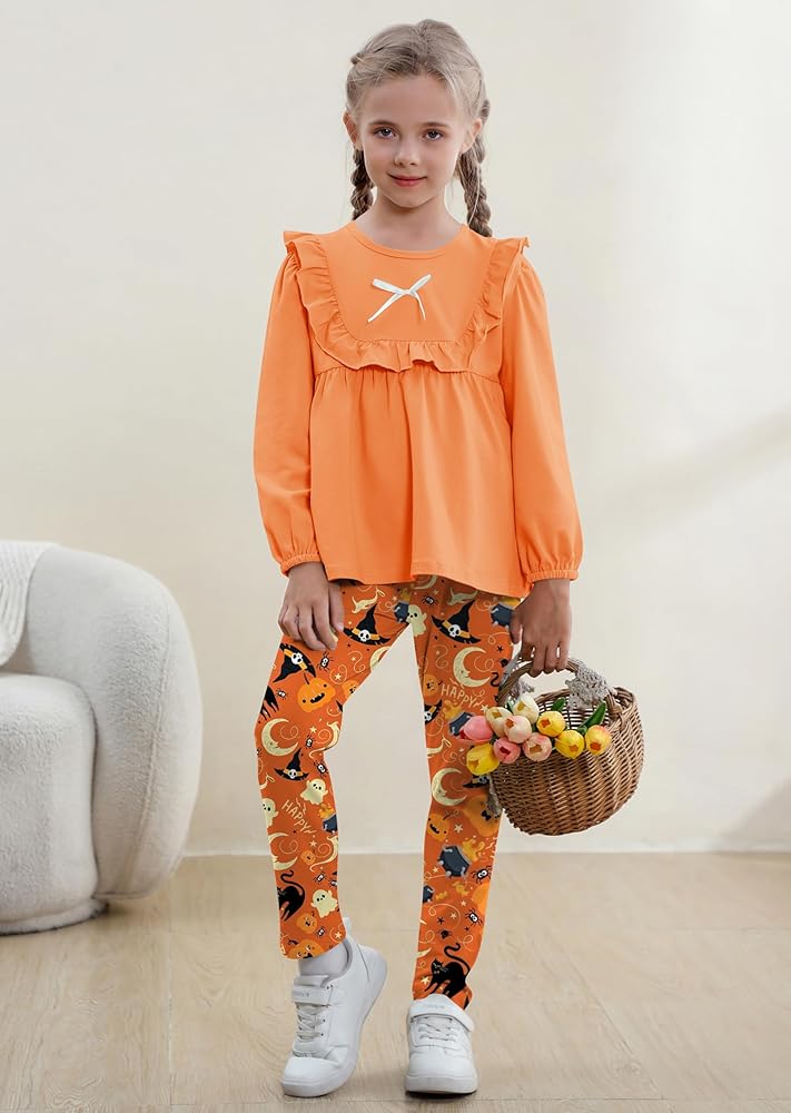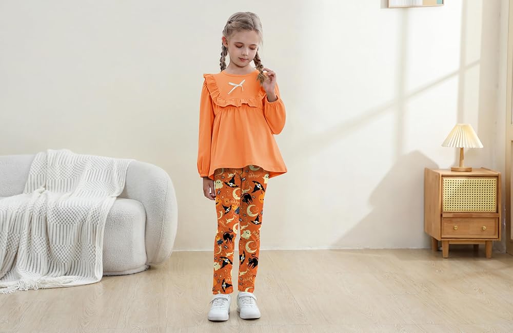 تصميم عصري: تصميمات علوية ذات ألوان ثابتة مكشكشة وفيونكة، لطيفة وعصرية. مع بنطال طويل مطابق بطبعات الأزهار. تخلق مجموعة ملابس الفتيات هذه مظهرًا لطيفًا ومتناسقًا وعصريًا وخالدًا