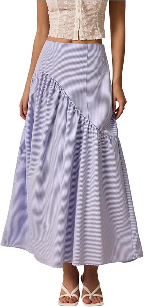 تنورة طويلة للسيدات من Milumia مطبوعة مخططة ذات طبقات وكشكشة واسعة على شكل حرف A تنانير طويلة