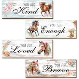 تحتوي العبوة على 4 قطع ديكور فني جداري مختلف على شكل حصان خشبي لراعية البقر مع اقتباسات تحفيزية. يبلغ حجم كل لوحة فنية جدارية حوالي 11.4 × 3.9 × 0.2 بوصة (29 × 10 × 0.5 سم)