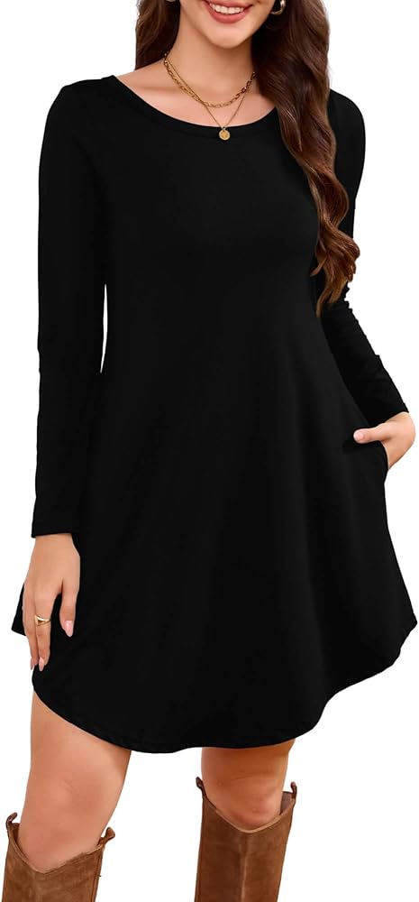 【خامة ناعمة】: فساتين التي شيرت طويلة الأكمام مع نسيج جيوب قابلة للتمدد وناعمة ومريحة. خامة خفيفة الوزن، مما يجعلها رائعة للربيع والخريف والشتاء. سوف تتدفق الفساتين المتأرجحة عند المشي وتشعر بالنعومة على بشرتك.