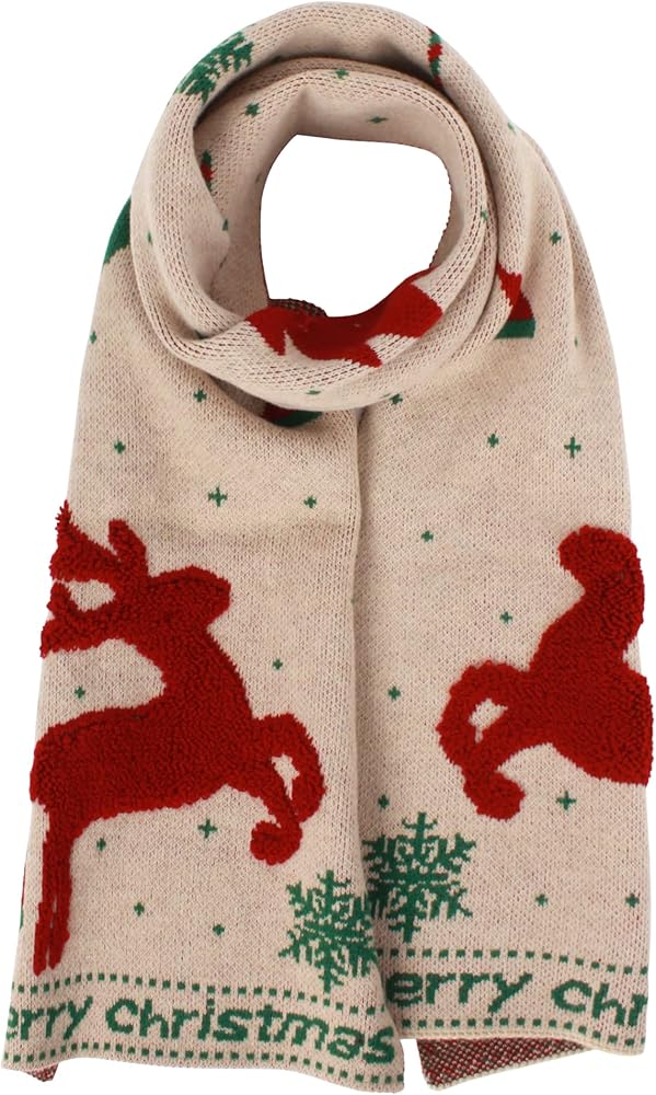 • Fashionable knitted scarf with cute snowflake and reindeer pattern, matching color tassel, very good christmas gift.