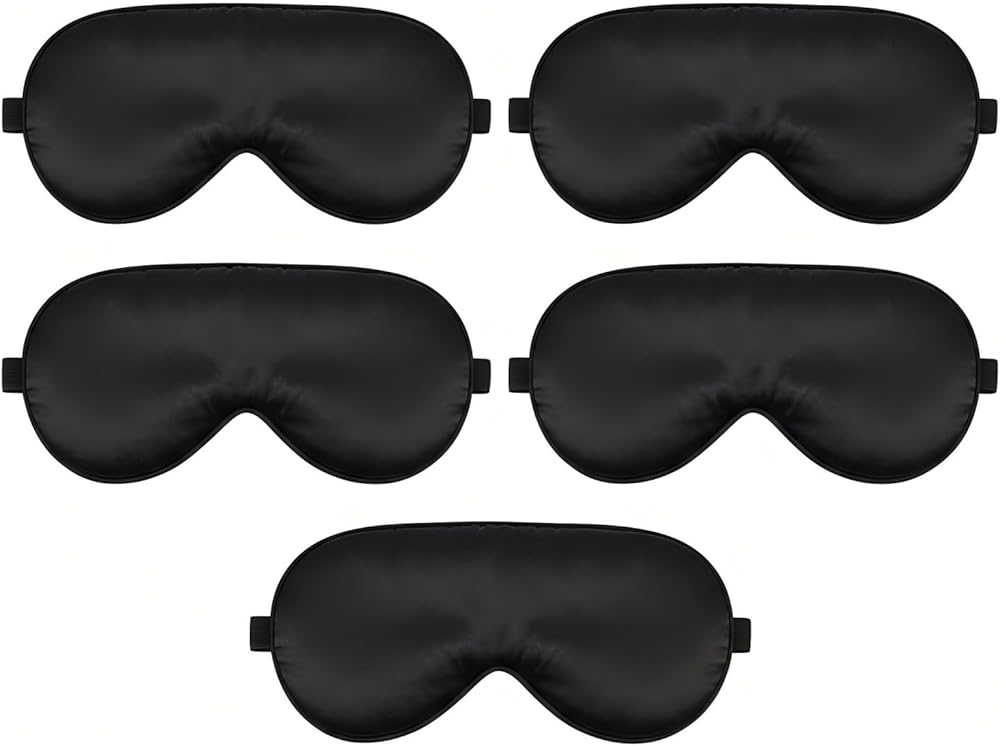 - عبوة فاخرة: مجموعة من 5 أقنعة نوم معتمة مصممة لحجب الضوء بالكامل، مثالية للنوم والسفر والتأمل واليوجا.
