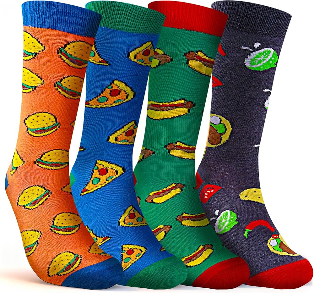 【أنماط طعام نابضة بالحياة وتصميم أنيق】: أظهر شخصيتك المرحة مع هذه الجوارب الجريئة والملونة ذات الطابع الغذائي! تتميز هذه الجوارب بتصميمات ممتعة مثل الهامبرغر والهوت دوج والبيتزا، وتضيف لمسة شبابية وحيوية إلى أي ملابس. مثالية للتعبير عن أسلوبك الفريد مع الحفاظ على أناقته.
