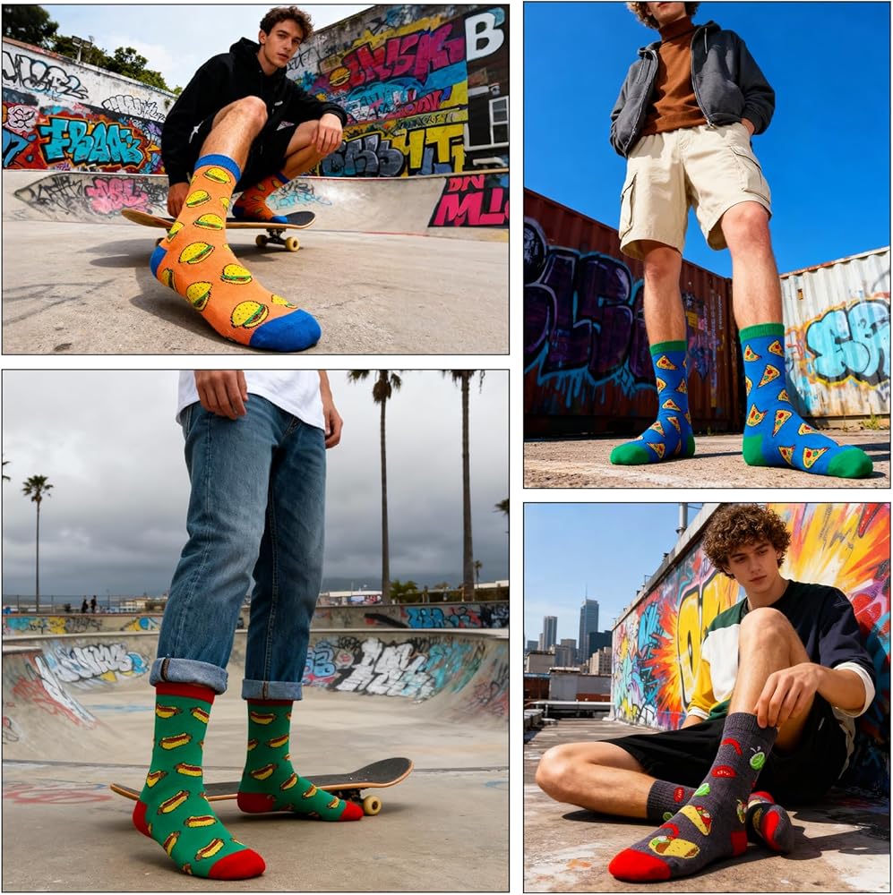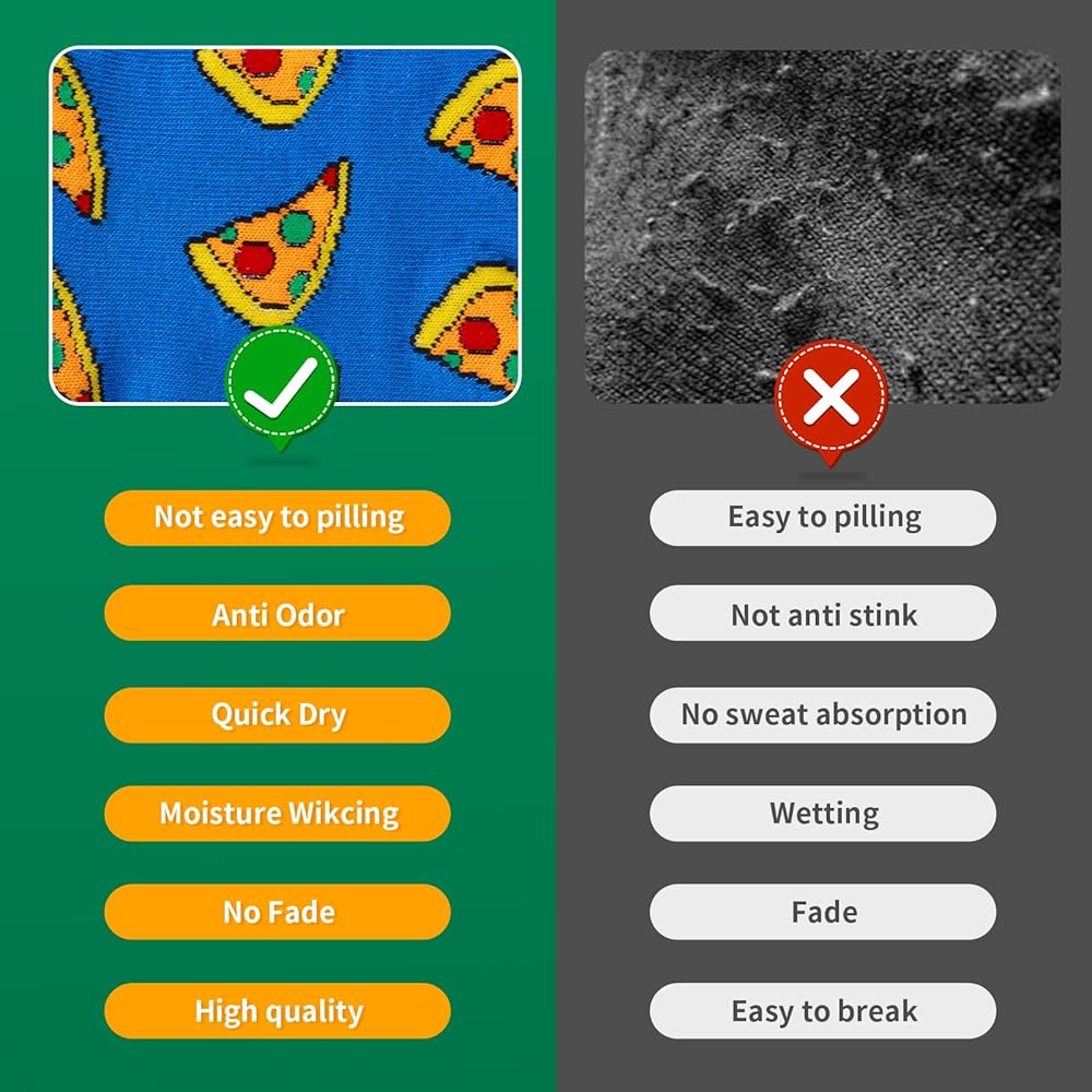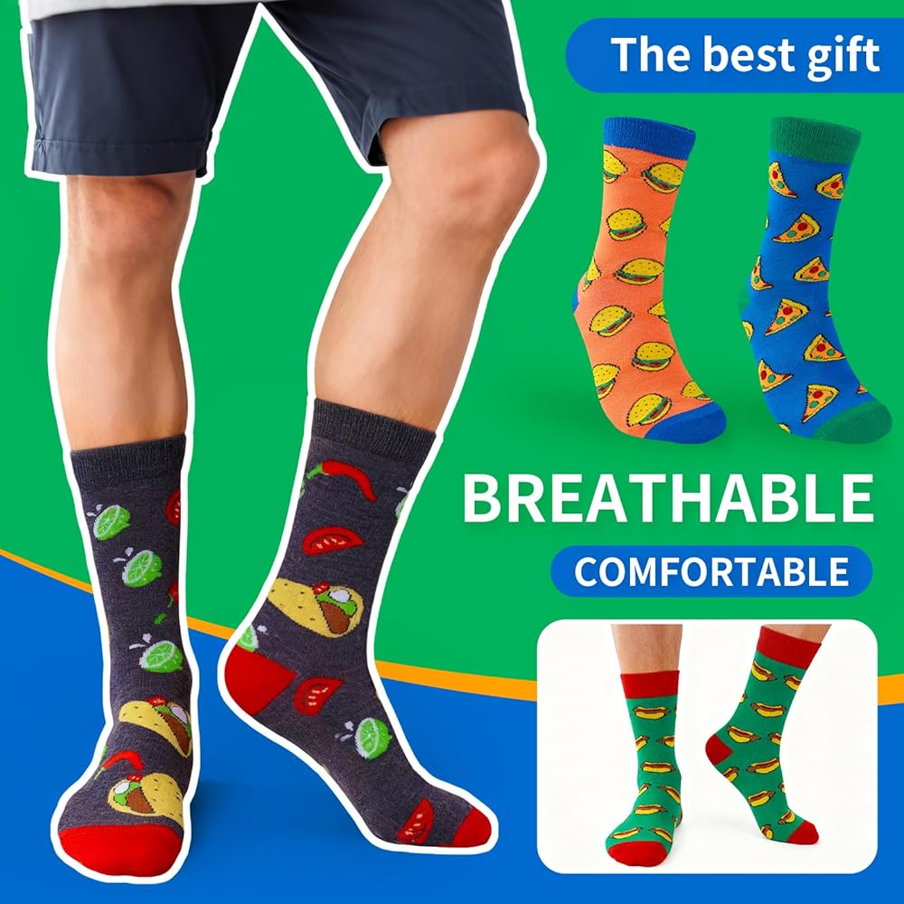 【فكرة هدية رائعة】: هل تبحث عن هدية ممتعة وعملية؟ تعتبر هذه الجوارب الغريبة المطبوعة بالطعام خيارًا ممتازًا للأصدقاء أو العائلة أو الزملاء. مثالية لأعياد الميلاد أو العطلات أو المناسبات الخاصة - فهي تجمع بين الفكاهة والراحة والأناقة في عبوة واحدة رائعة!
