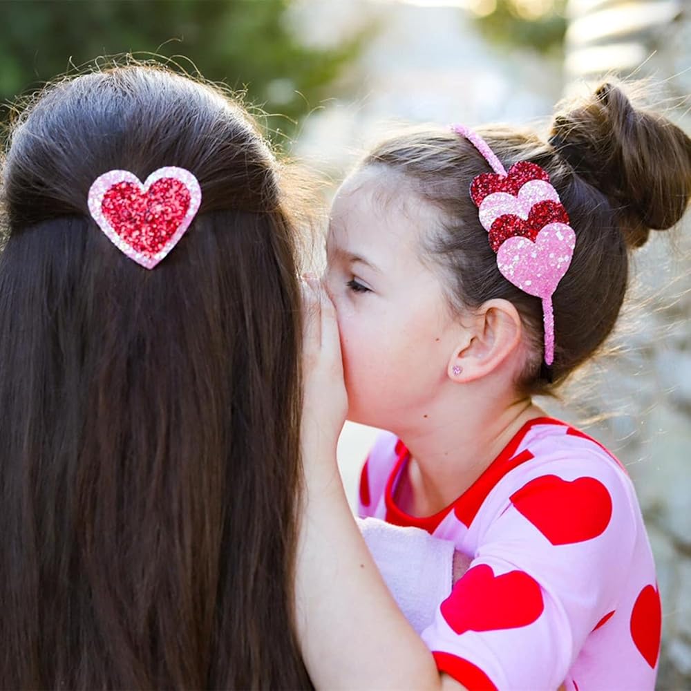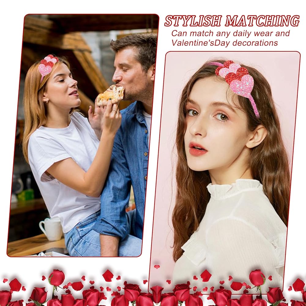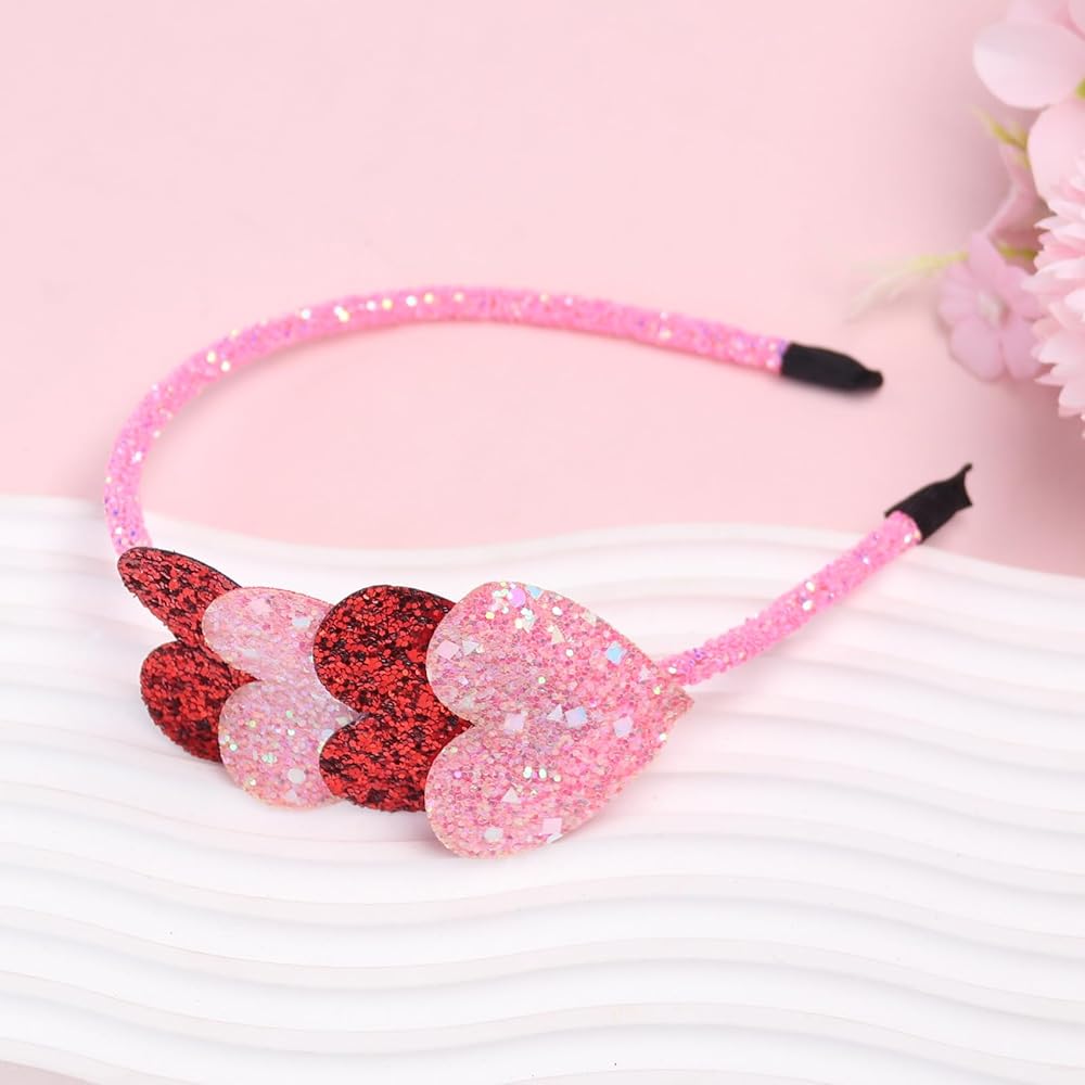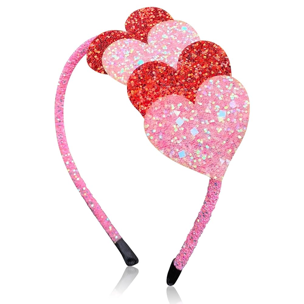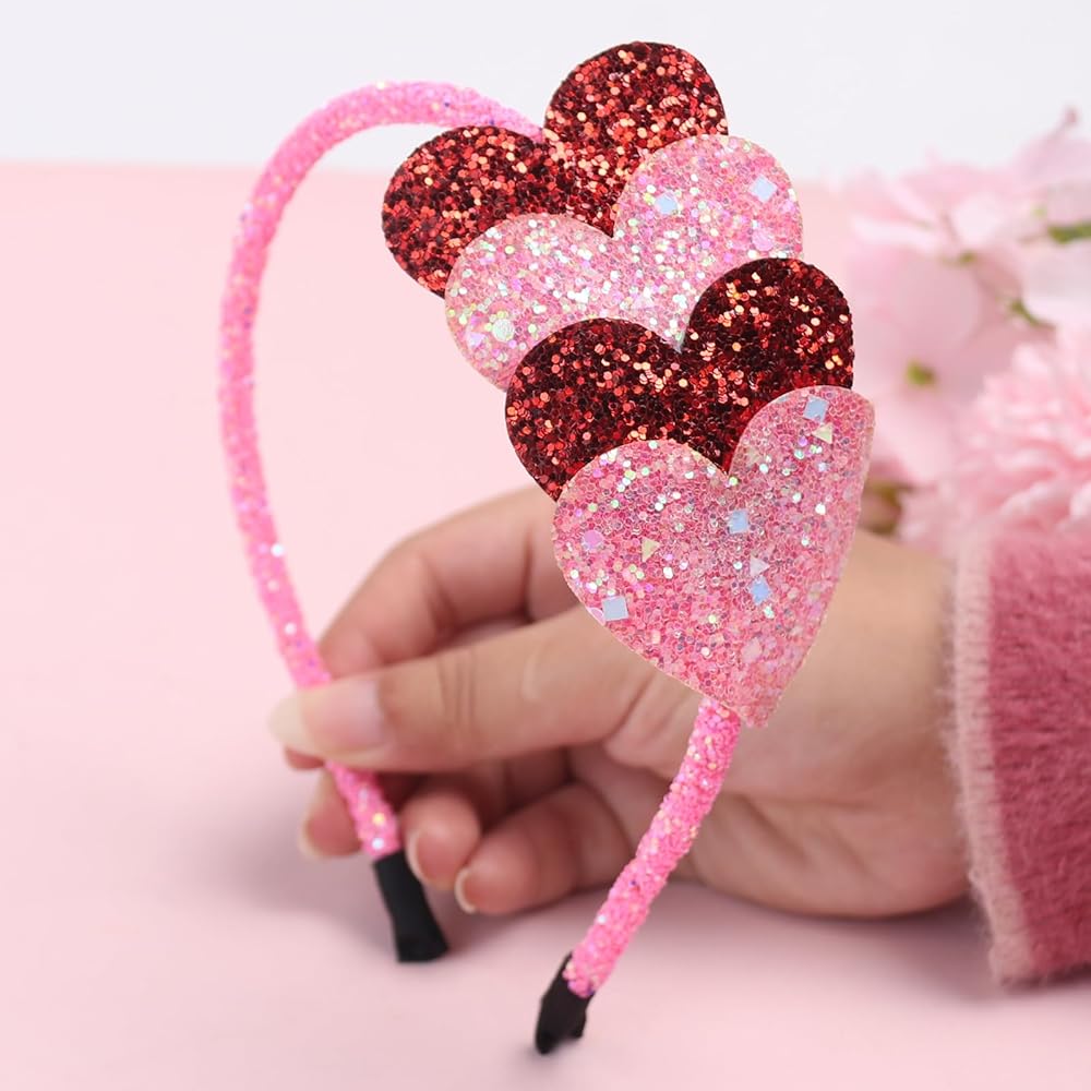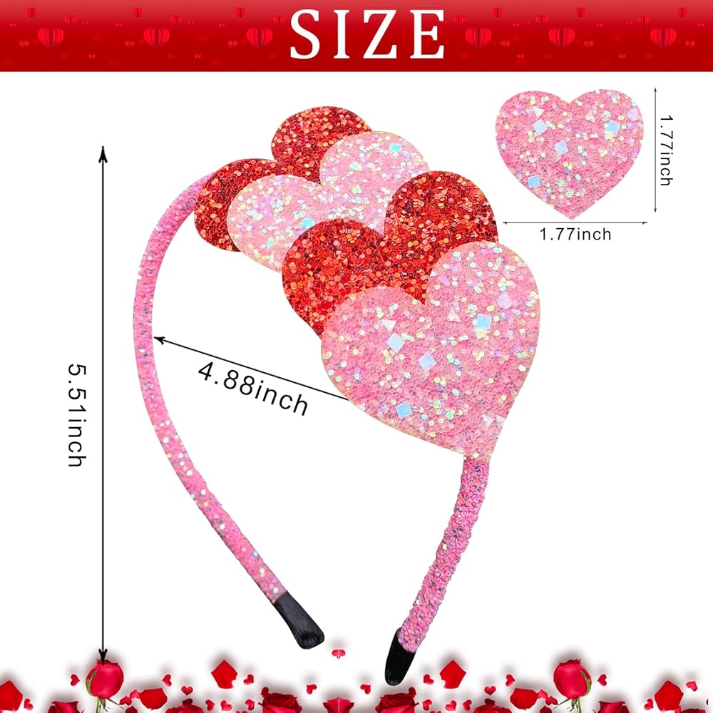 Sparkly Design: Glitter hair hand features have heart shape decorated with pink and red color, all of these details make the Valentines hair band adorable and festive for your holiday costumes and outfits