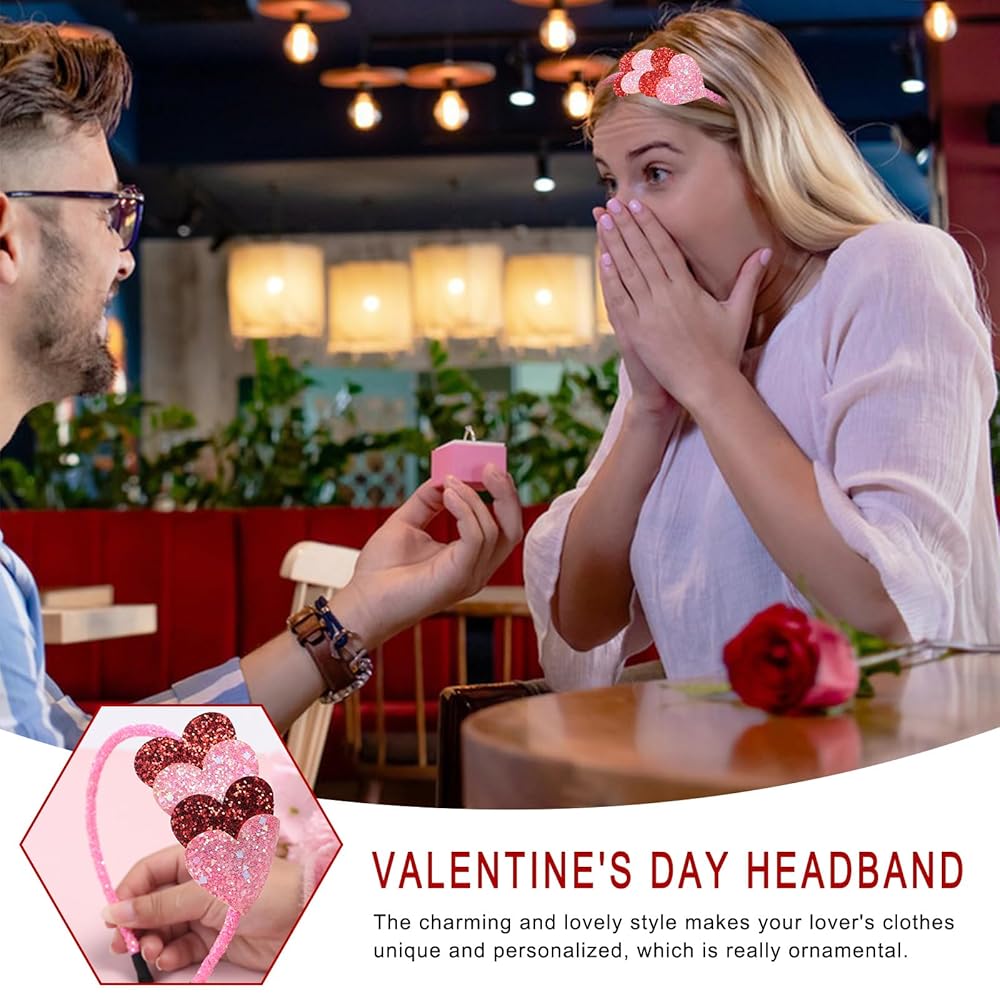 totelux عيد الحب عقال بريق القلب الشعر الفرقة سباركلي الوردي الأحمر الحب إكسسوارات الشعر للنساء الفتيات عيد الحب حزب غطاء الرأس الديكور الخطوبة عيد ميلاد لوازم الزفاف هدية