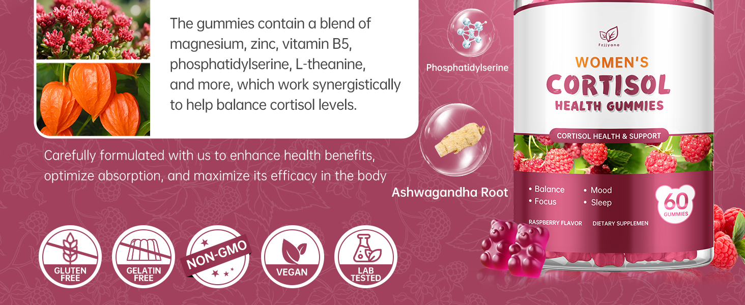 دعم المناعة: مكملات الكورتيزول للنساء، والتي تساعد على تعزيز دعم المناعة واستقلاب الطاقة، ودعم وظائف الجسم الطبيعية بشكل شامل تحت الضغط والحفاظ على صحة الغدة الكظرية.