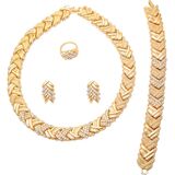 3. تصميم رائع وفاخر: مجوهرات نسائية، نمط قمح طبيعي، مع تصميم رائع وبنية صلبة، كل كريستال على حدة تم إعداده بحرفية ممتازة. تتميز مجموعة المجوهرات الذهبية في دبي بالذهب العادي الذي يتناسب بشكل مثالي مع اللون الداكن.