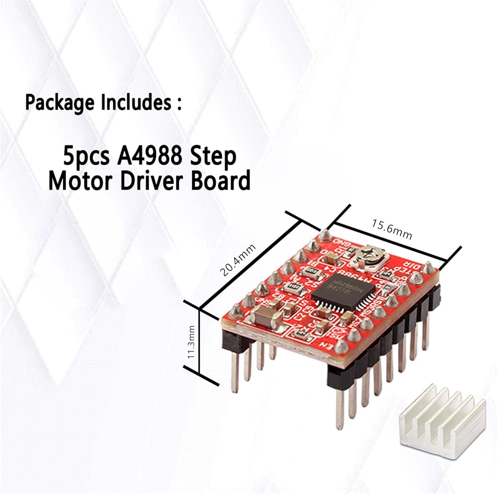 سهل التشغيل: هذا محرك كامل ذو خطوات دقيقة مع محول مدمج؛ عند تشغيل الخطوات الدقيقة، يمكن لتحكم المروحية المتوافق مع A4988 تحديد وضع الاضمحلال الحالي تلقائيًا، أو دقة بطيئة أو مختلطة من خمس خطوات: