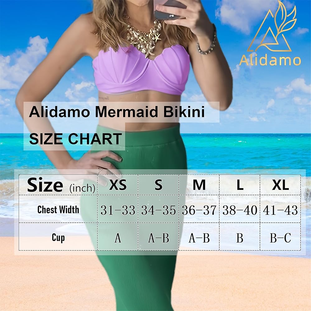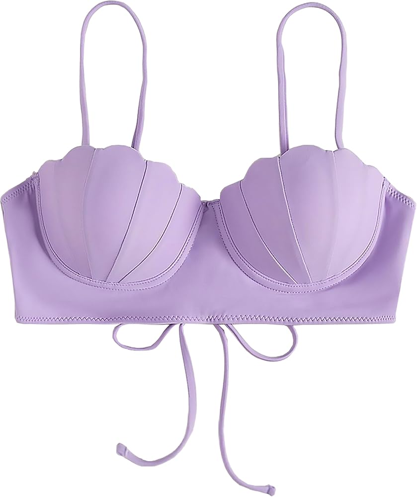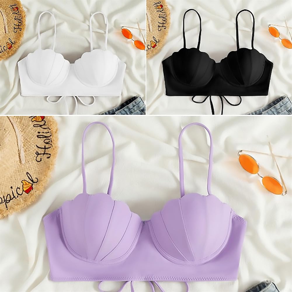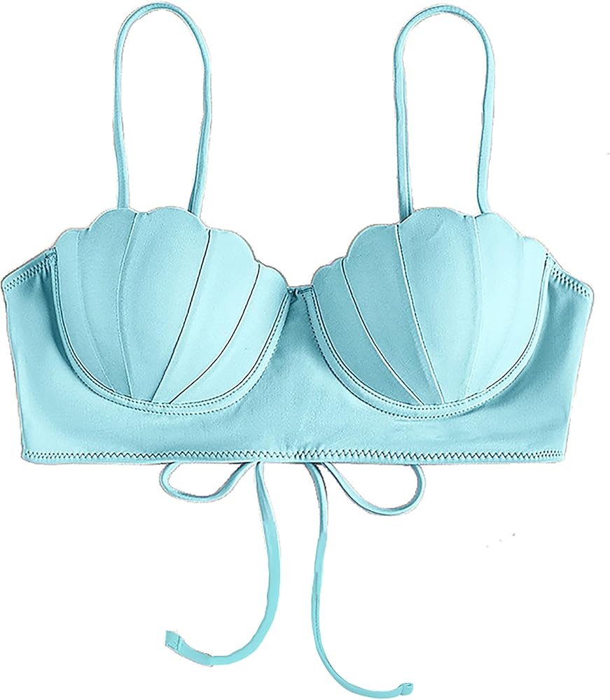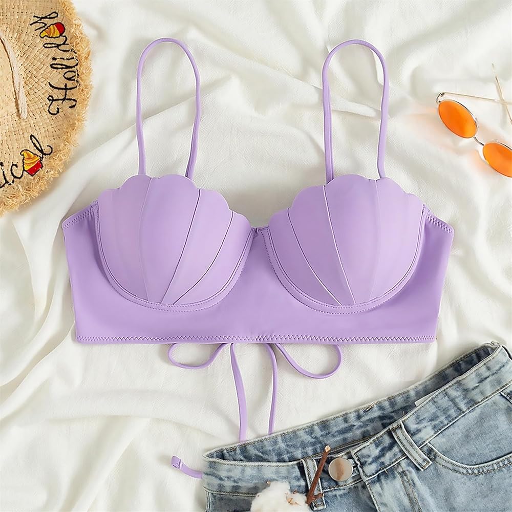 قطعة علوية بكيني حورية البحر من Alidamo للنساء ملابس سباحة حمالة صدر صدفية لباس استحمام يدعم الضوء وحزام خلفي قابل للتعديل
