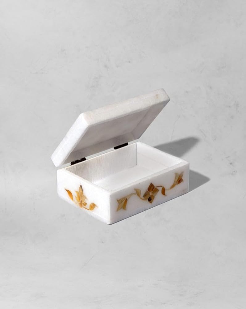 Add a touch of timeless beauty to your home with our Handcrafted Marble Inlay Jewelry Box, a luxurious fusion of Indian craftsmanship and functional elegance. Made from natural white marble and adorned with detailed floral inlay work using semi-precious stones, this decorative marble keepsake box brings heritage artistry to modern interiors.
